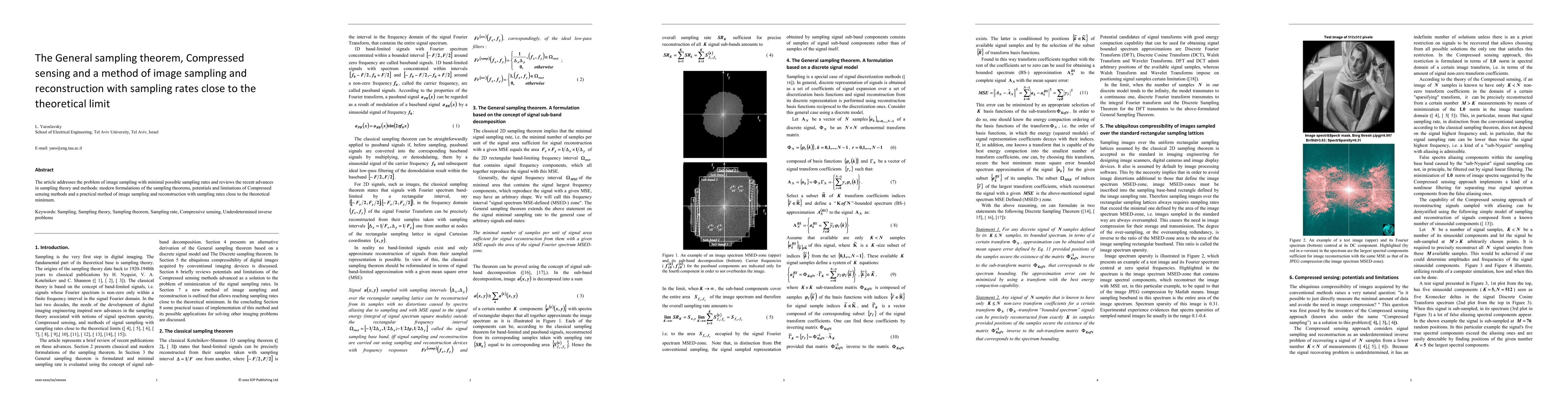 The article addresses the problem of image sampling with minimal possible sampling rates and reviews the recent advances in sampling theory and methods: modern formulations of the sampling theorems, potentials and limitations of Compressed sensing methods and a practical method of image sampling and reconstruction with sampling rates close to the theoretical minimum.