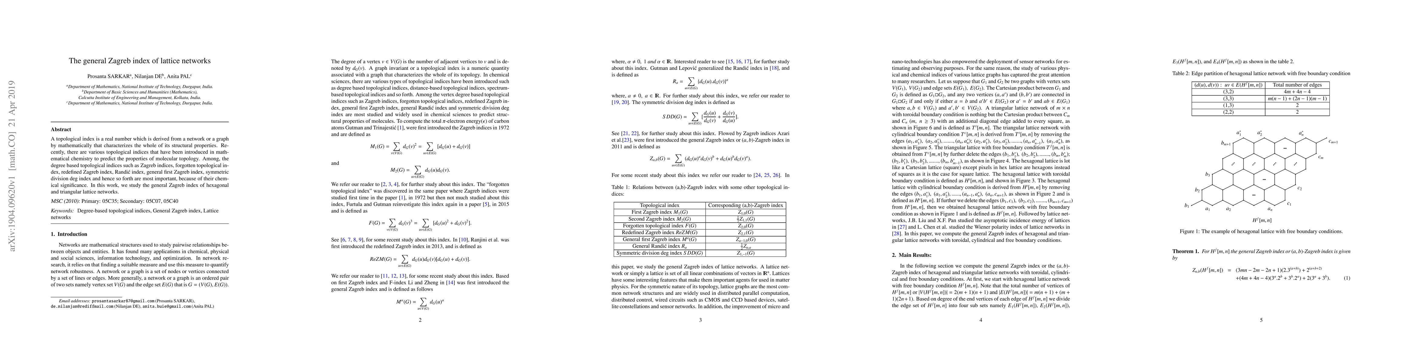 This paper investigates the general Zagreb index, a degree-based topological index, for hexagonal and triangular lattice networks to characterize their structural properties and predict molecular topology. The study aims to understand the chemical significance of these networks through mathematical analysis.