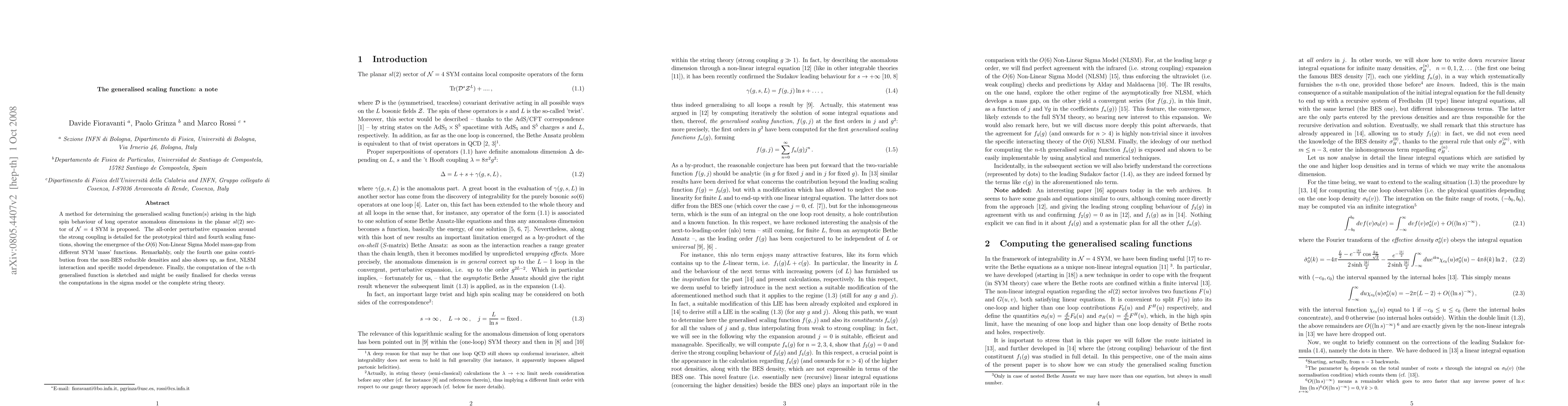 A method for determining the generalised scaling function(s) arising in the high spin behaviour of long operator anomalous dimensions in the planar $sl(2)$ sector of ${\cal N}=4$ SYM is proposed. The all-order perturbative expansion around the strong coupling is detailed for the prototypical third and fourth scaling functions, showing the emergence of the O(6) Non-Linear Sigma Model mass-gap from different SYM 'mass' functions. Remarkably, only the fourth one gains contribution from the non-BES reducible densities and also shows up, as first, NLSM interaction and specific model dependence. Finally, the computation of the $n$-th generalised function is sketched and might be easily finalised for checks versus the computations in the sigma model or the complete string theory.