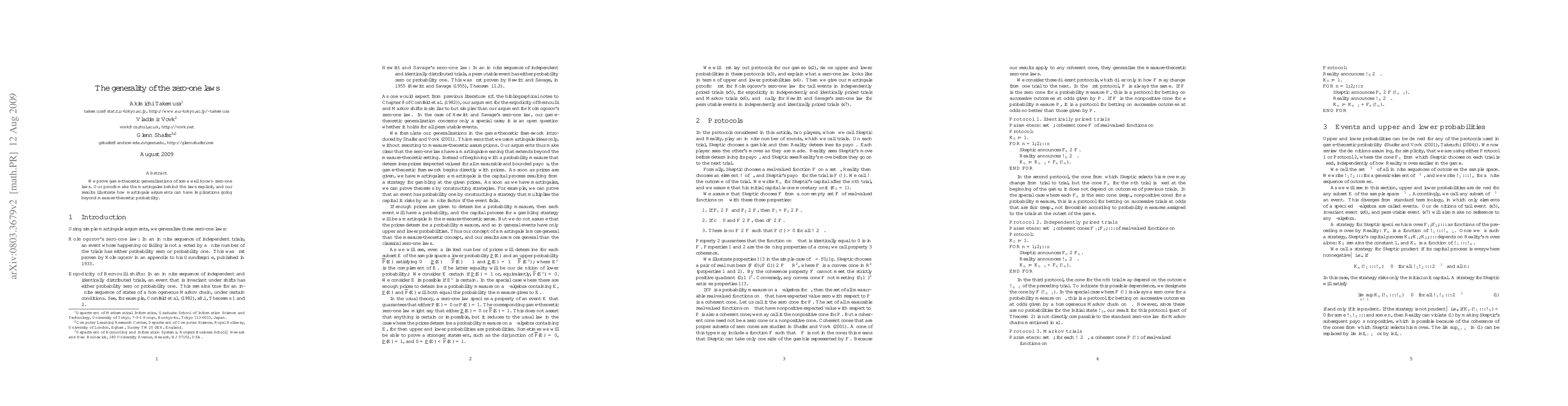 Summary: This paper proves game-theoretic extensions of zero-one laws, explicitly detailing the martingales involved, and demonstrates the broader applicability of martingale arguments beyond traditional measure-theoretic probability.