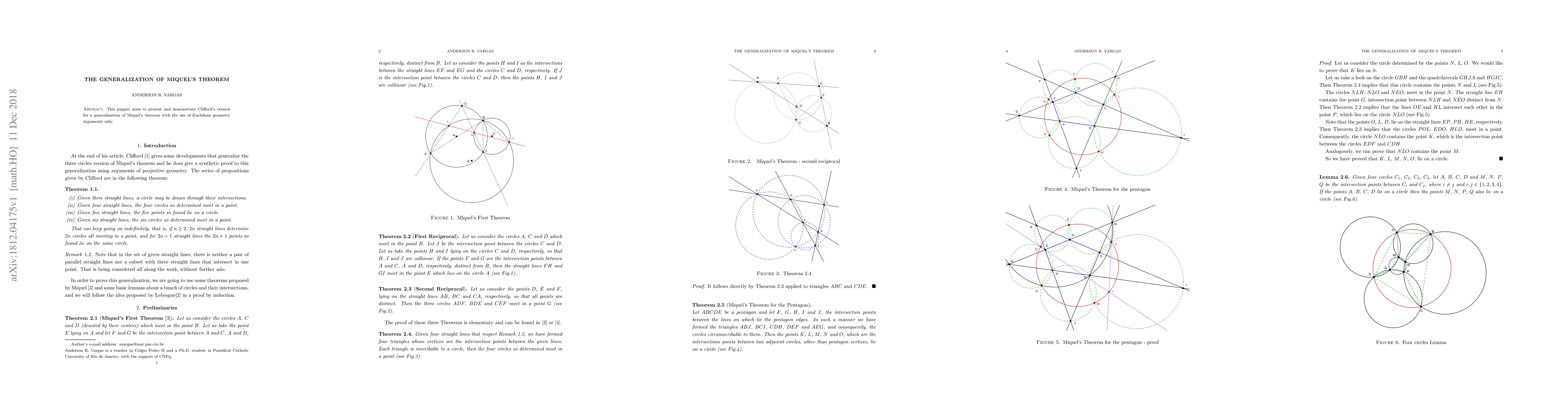Summary: This paper presents Clifford's generalization of Miquel's theorem using Euclidean geometry arguments, demonstrating the extended theorem's validity through classical geometric reasoning.