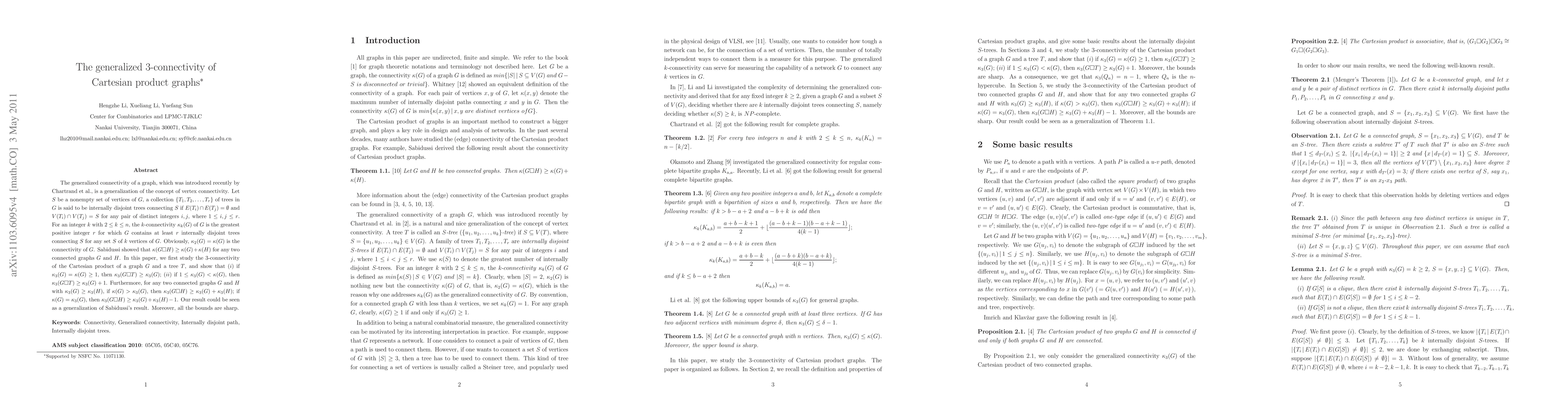 The paper presents detailed proofs and constructions for the 3-connectivity of Cartesian products of connected graphs and trees, establishing new bounds and conditions.
