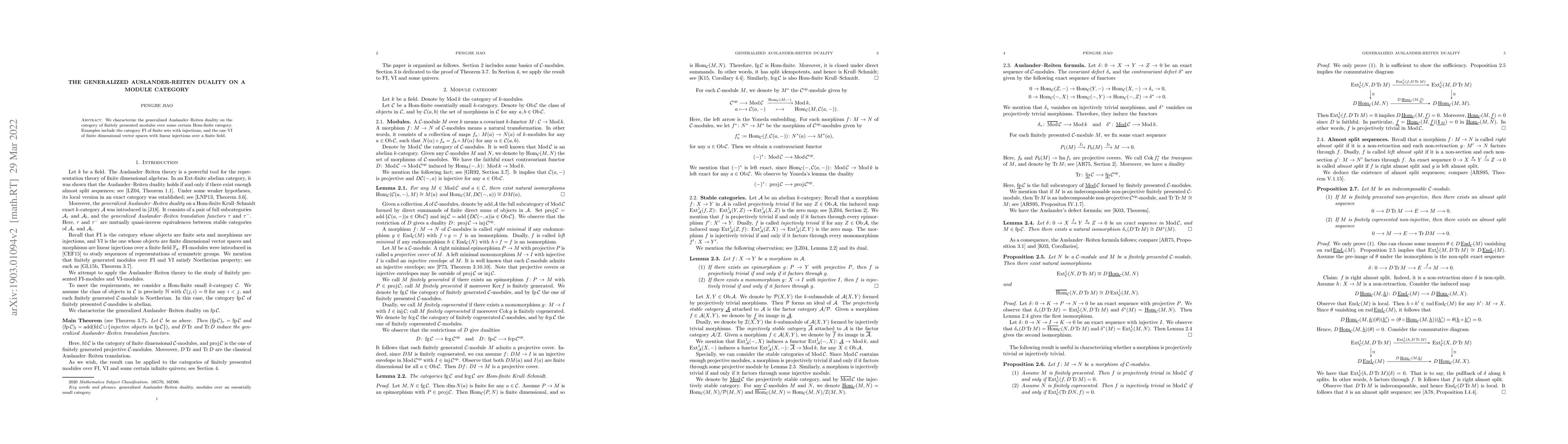 Researchers characterize a generalized Auslander-Reiten duality for finitely presented modules in Hom-finite categories, with applications to finite sets and vector spaces.