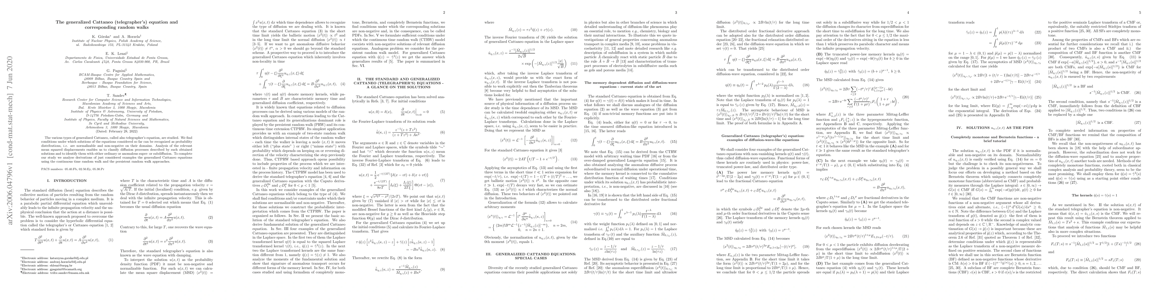 This paper investigates generalized Cattaneo equations, identifying conditions under which their solutions are valid probability distributions. It classifies the resulting diffusion processes as ordinary or anomalous super-/subdiffusion based on mean squared displacements, and connects these findings to continuous time and persistent random walk models.