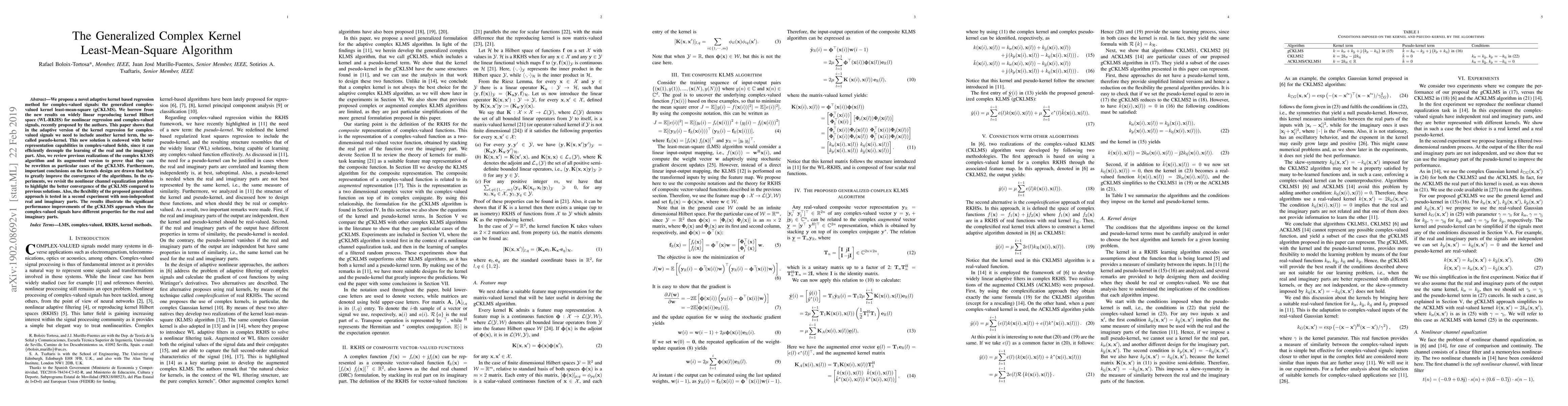 This paper introduces the generalized complex-valued kernel least-mean-square (gCKLMS) algorithm, which enhances adaptive kernel regression for complex-valued signals by incorporating a pseudo-kernel to better separate real and imaginary components. Experimental results demonstrate superior convergence and flexibility over previous complex KLMS algorithms in tasks like nonlinear channel equalization.