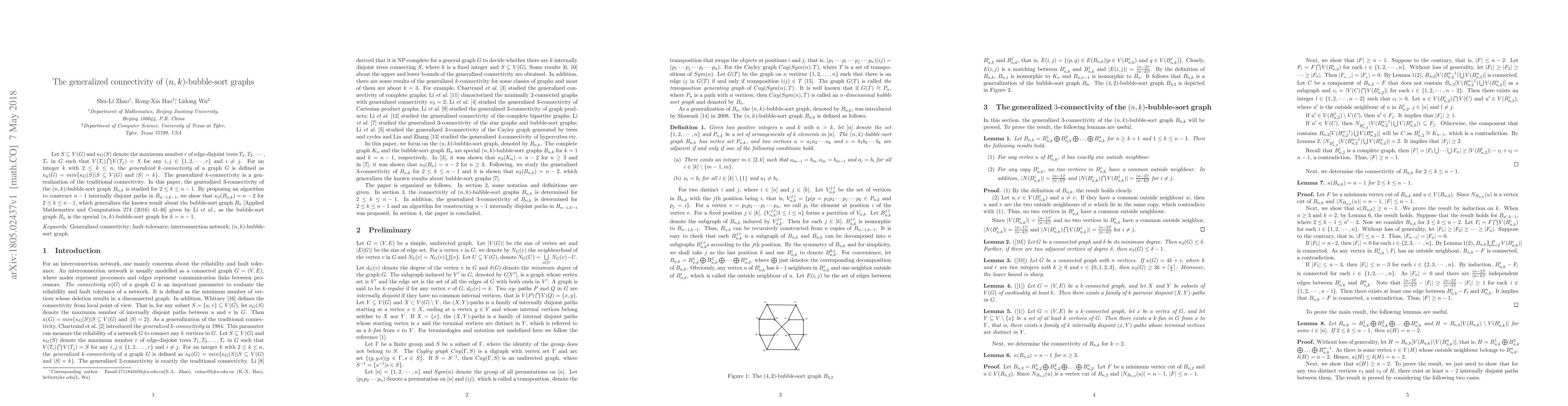 Let $S\subseteq V(G)$ and $\kappa_{G}(S)$ denote the maximum number $r$ of edge-disjoint trees $T_1, T_2, \cdots, T_r$ in $G$ such that $V(T_i)\bigcap V(T_{j})=S$ for any $i, j \in \{1, 2, \cdots, r\}$ and $i\neq j$. For an integer $k$ with $2\leq k\leq n$, the {\em generalized $k$-connectivity} of a graph $G$ is defined as $\kappa_{k}(G)= min\{\kappa_{G}(S)|S\subseteq V(G)$ and $|S|=k\}$. The generalized $k$-connectivity is a generalization of the traditional connectivity. In this paper, the generalized $3$-connectivity of the $(n,k)$-bubble-sort graph $B_{n,k}$ is studied for $2\leq k\leq n-1$. By proposing an algorithm to construct $n-1$ internally disjoint paths in $B_{n-1,k-1}$, we show that $\kappa_{3}(B_{n,k})=n-2$ for $2\leq k\leq n-1$, which generalizes the known result about the bubble-sort graph $B_{n}$ [Applied Mathematics and Computation 274 (2016) 41-46] given by Li $et$ $al.$, as the bubble-sort graph $B_{n}$ is the special $(n,k)$-bubble-sort graph for $k=n-1$.