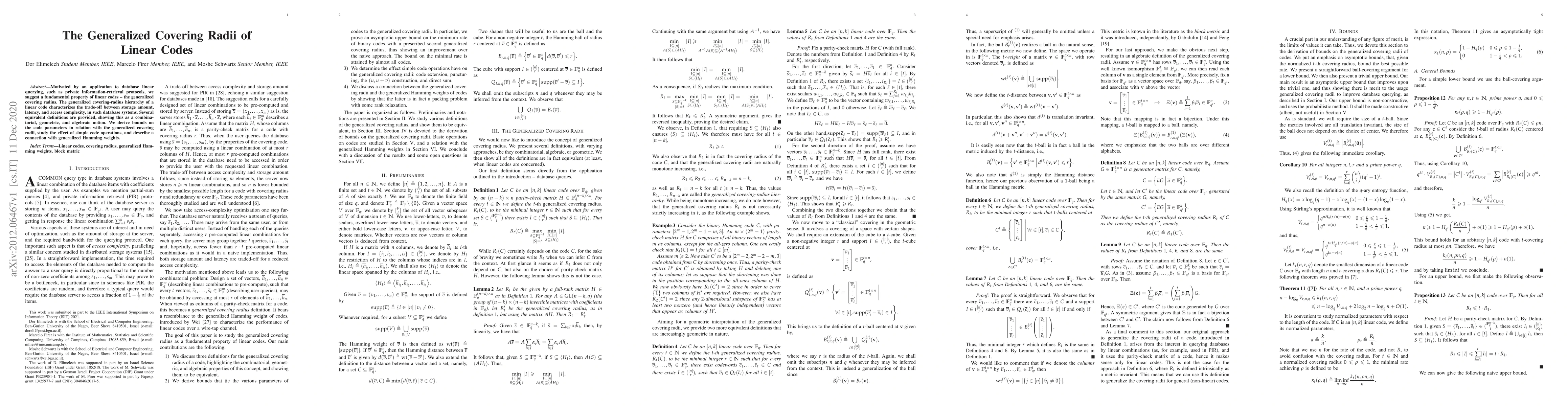 The paper introduces the generalized covering radius for linear codes, elucidating its combinatorial, geometric, and algebraic interpretations, and explores its implications for database systems, including storage, latency, and access complexity. It also establishes bounds on code parameters and examines the impact of code operations on these radii.