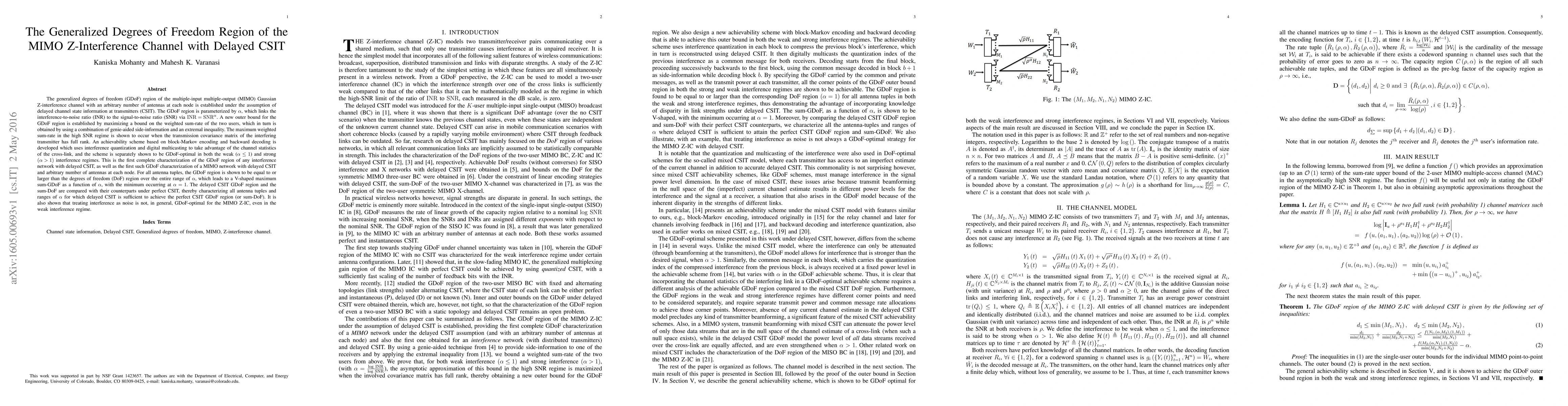 The generalized degrees of freedom (GDoF) region of the multiple-input multiple-output (MIMO) Gaussian Z-interference channel with an arbitrary number of antennas at each node is established under the assumption of delayed channel state information at transmitters (CSIT). The GDoF region is parameterized by $\alpha$, which links the interference-to-noise ratio (INR) to the signal-to-noise ratio (SNR) via $INR=SNR^{\alpha}$. A new outer bound for the GDoF region is established by maximizing a bound on the weighted sum-rate of the two users, which in turn is obtained by using a combination of genie-aided side-information and an extremal inequality. The maximum weighted sum-rate in the high SNR regime is shown to occur when the transmission covariance matrix of the interfering transmitter has full rank. An achievability scheme based on block-Markov encoding and backward decoding is developed which uses interference quantization and digital multicasting to take advantage of the channel statistics of the cross-link, and the scheme is separately shown to be GDoF-optimal in both the weak ($\alpha\leq1$) and strong ($\alpha>1$) interference regimes. This is the first complete characterization of the GDoF region of any interference network with delayed CSIT, as well as the first such GDoF characterization of a MIMO network with delayed CSIT and arbitrary number of antennas at each node. For all antenna tuples, the GDoF region is shown to be equal to or larger than the degrees of freedom (DoF) region over the entire range of $\alpha$, which leads to a V-shaped maximum sum-GDoF as a function of $\alpha$, with the minimum occurring at $\alpha=1$. The delayed CSIT GDoF region and the sum-DoF are compared with their counterparts under perfect CSIT, thereby characterizing all antenna tuples and ranges of $\alpha$ for which delayed CSIT is sufficient to achieve the perfect CSIT GDoF region or sum-DoF.