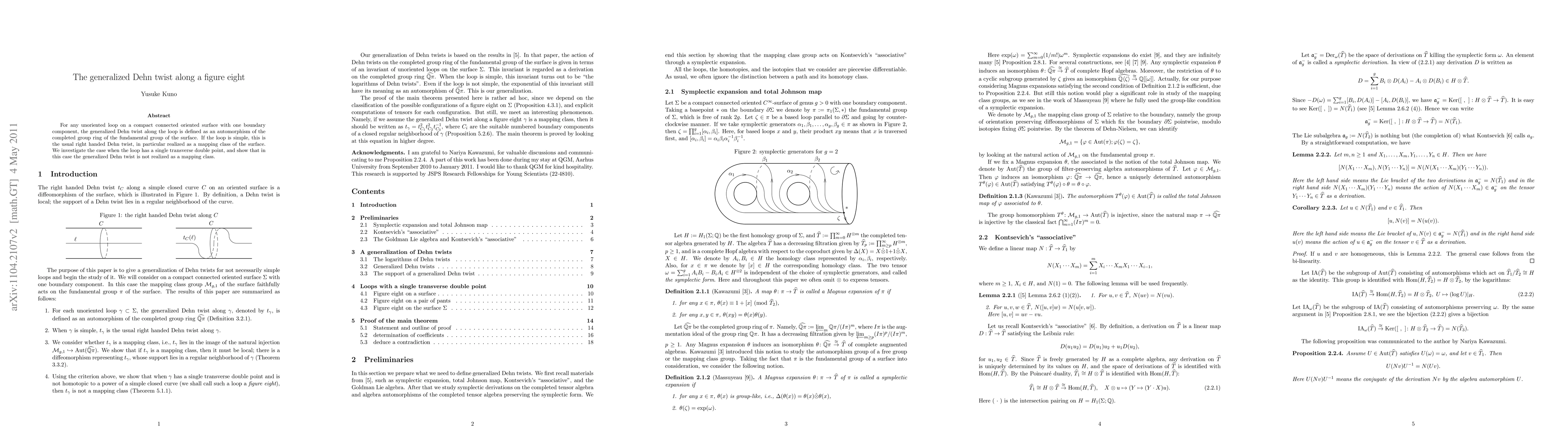 This paper defines the generalized Dehn twist along an unoriented loop on a compact connected oriented surface and explores its effect on the completed group ring of the surface's fundamental group. It finds that when the loop has a single transverse double point, the twist does not correspond to a mapping class of the surface.