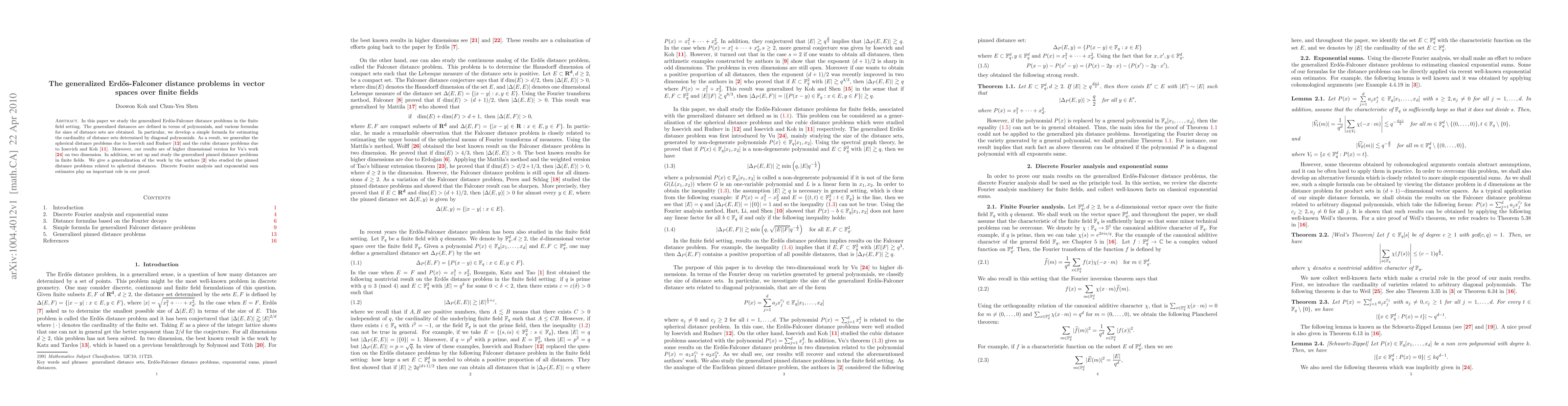 This paper investigates generalized Erdos-Falconer distance problems in finite fields, deriving formulas for the sizes of distance sets defined by polynomials. It develops a formula for estimating the cardinality of distance sets from diagonal polynomials, generalizing previous work on spherical and cubic distance problems.