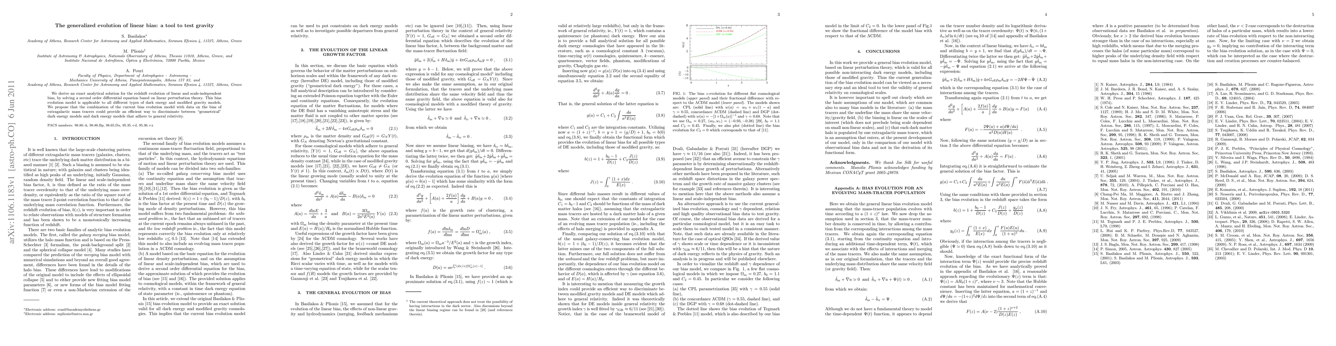 We derive an exact analytical solution for the redshift evolution of linear and scale-independent bias, by solving a second order differential equation based on linear perturbation theory. This bias evolution model is applicable to all different types of dark energy and modified gravity models. We propose that the combination of the current bias evolution model with data on the bias of extragalactic mass tracers could provide an efficient way to discriminate between "geometrical" dark energy models and dark energy models that adhere to general relativity.