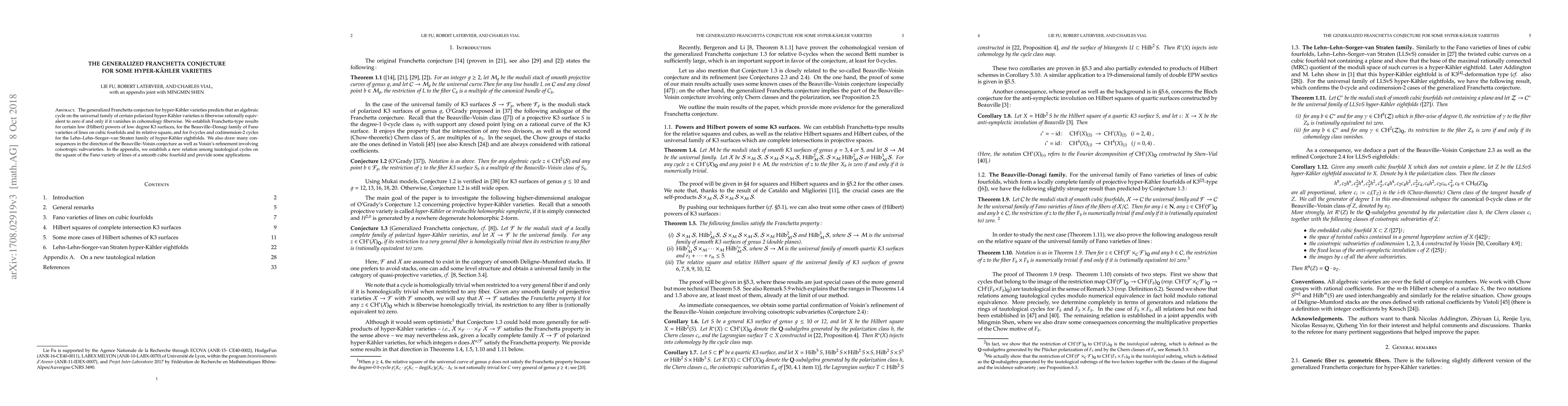 The generalized Franchetta conjecture for hyper-K\"ahler varieties predicts that an algebraic cycle on the universal family of certain polarized hyper-K\"ahler varieties is fiberwise rationally equivalent to zero if and only if it vanishes in cohomology fiberwise. We establish Franchetta-type results for certain low (Hilbert) powers of low degree K3 surfaces, for the Beauville--Donagi family of Fano varieties of lines on cubic fourfolds and its relative square, and for $0$-cycles and codimension-$2$ cycles for the Lehn--Lehn--Sorger--van Straten family of hyper-K\"ahler eightfolds. We also draw many consequences in the direction of the Beauville--Voisin conjecture as well as Voisin's refinement involving coisotropic subvarieties. In the appendix, we establish a new relation among tautological cycles on the square of the Fano variety of lines of a smooth cubic fourfold and provide some applications.