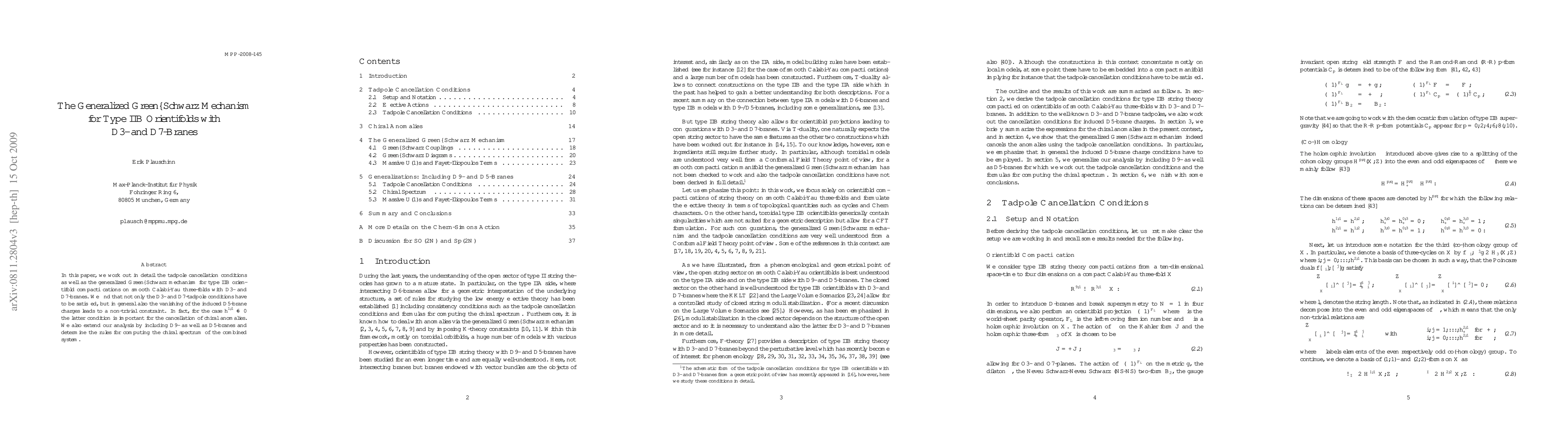 This paper details the tadpole cancellation conditions and the generalized Green-Schwarz mechanism for type IIB orientifold compactifications with D3- and D7-branes, highlighting the necessity of D5-brane charge cancellation for anomaly cancellation when $h^{1,1}_{-} \neq 0$. It also extends the analysis to include D9- and D5-branes and establishes rules for computing the chiral spectrum.