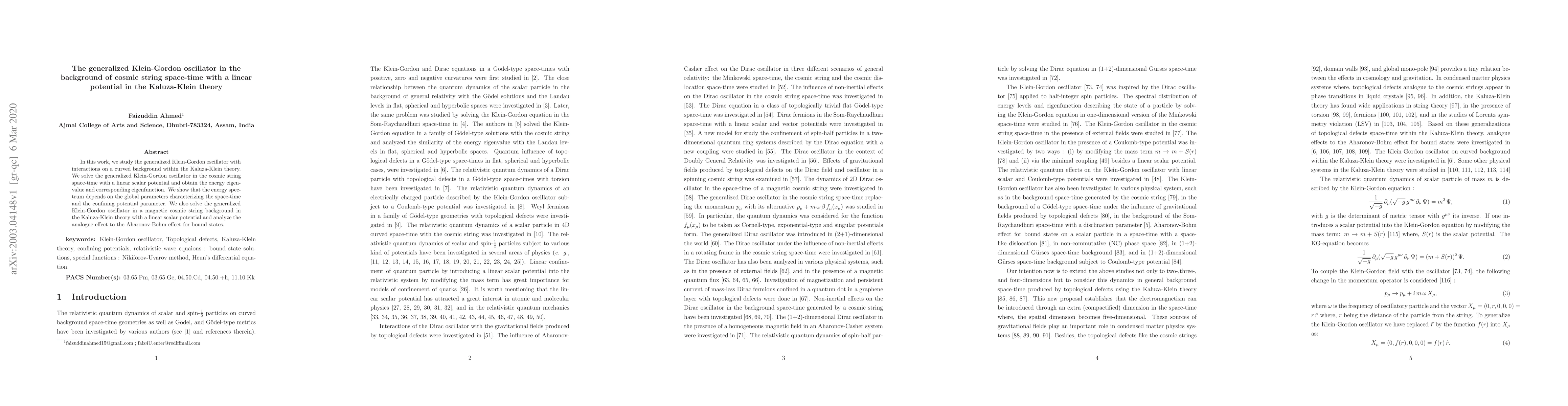 This paper investigates the generalized Klein-Gordon oscillator in cosmic string space-time within the Kaluza-Klein framework, solving for energy eigenvalues under linear scalar potentials. It reveals that the energy spectrum is influenced by the space-time parameters and the potential strength, and analyzes the Aharonov-Bohm analogue effect in magnetic cosmic string backgrounds.