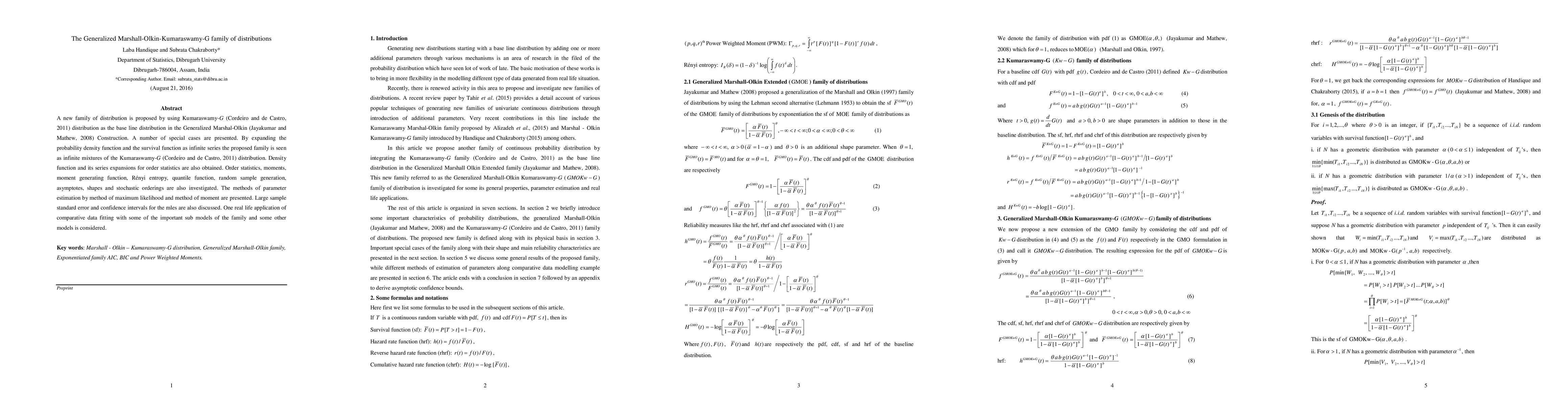 A new family of distribution is proposed by using Kumaraswamy-G (Cordeiro and de Castro, 2011) distribution as the base line distribution in the Generalized Marshal-Olkin (Jayakumar and Mathew, 2008) Construction. A number of special cases are presented. By expanding the probability density function and the survival function as infinite series the proposed family is seen as infinite mixtures of the Kumaraswamy-G (Cordeiro and de Castro, 2011) distribution. Density function and its series expansions for order statistics are also obtained. Order statistics, moments, moment generating function, R\'enyi entropy, quantile function, random sample generation, asymptotes, shapes and stochastic orderings are also investigated. The methods of parameter estimation by method of maximum likelihood and method of moment are presented. Large sample standard error and confidence intervals for the mles are also discussed. One real life application of comparative data fitting with some of the important sub models of the family and some other models is considered.