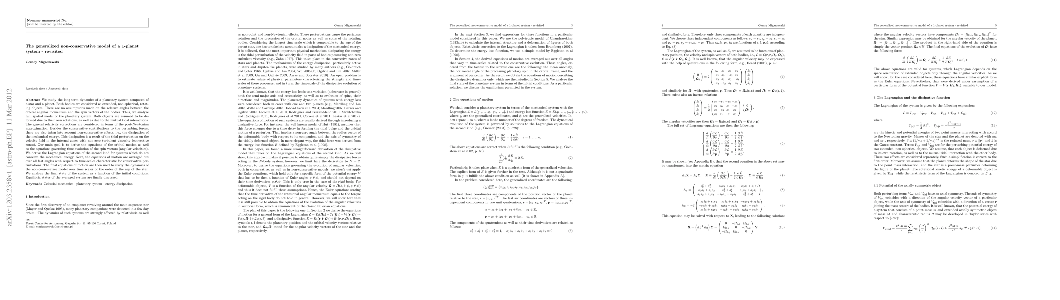 Researchers developed a new model of a planetary system that includes non-conservative effects due to tidal interactions and energy dissipation, enabling the study of long-term dynamics over time scales comparable to the star's age.