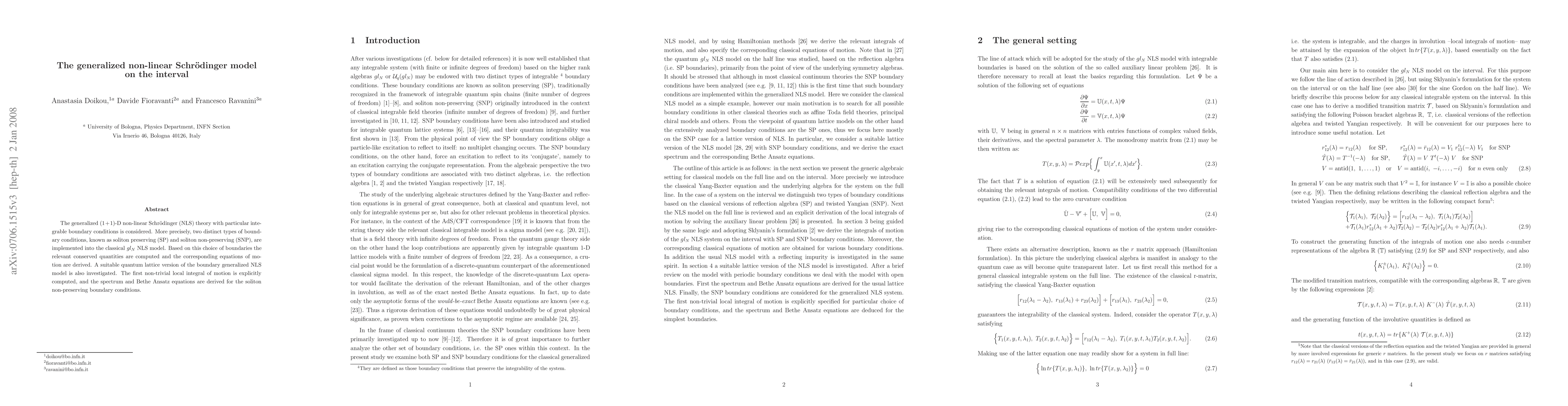 The generalized (1+1)-D non-linear Schrodinger (NLS) theory with particular integrable boundary conditions is considered. More precisely, two distinct types of boundary conditions, known as soliton preserving (SP) and soliton non-preserving (SNP), are implemented into the classical $gl_N$ NLS model. Based on this choice of boundaries the relevant conserved quantities are computed and the corresponding equations of motion are derived. A suitable quantum lattice version of the boundary generalized NLS model is also investigated. The first non-trivial local integral of motion is explicitly computed, and the spectrum and Bethe Ansatz equations are derived for the soliton non-preserving boundary conditions.