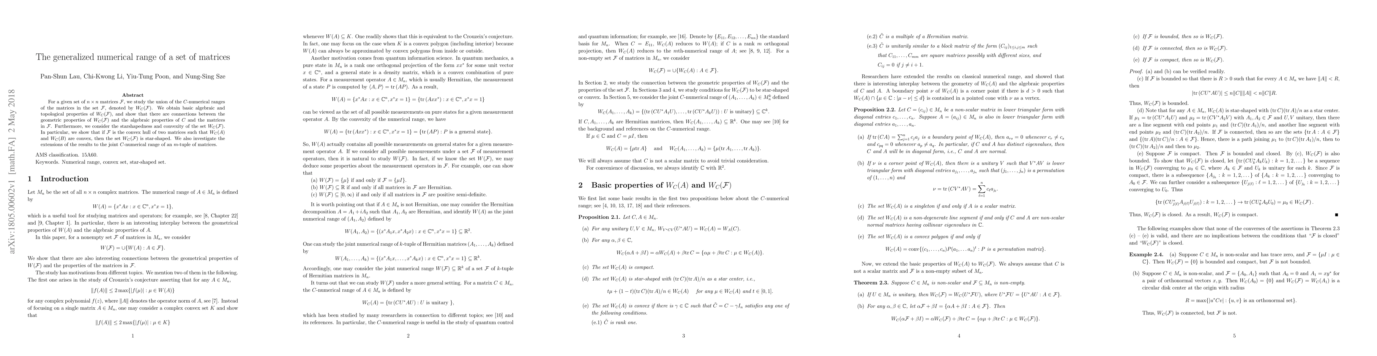 The research paper studies the union of C-numerical ranges of a set of matrices and explores its properties, connections to algebraic and geometric characteristics, and implications for convexity and starshapedness.