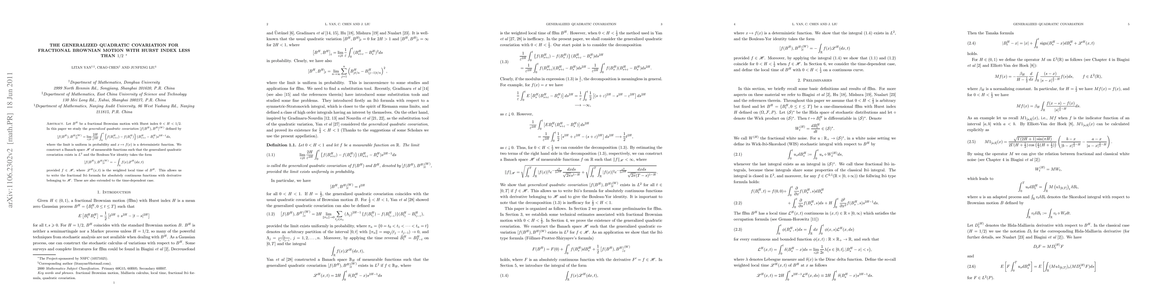 This paper develops a mathematical framework for fractional Brownian motion, introducing the generalized quadratic covariation that allows for the extension of the It\