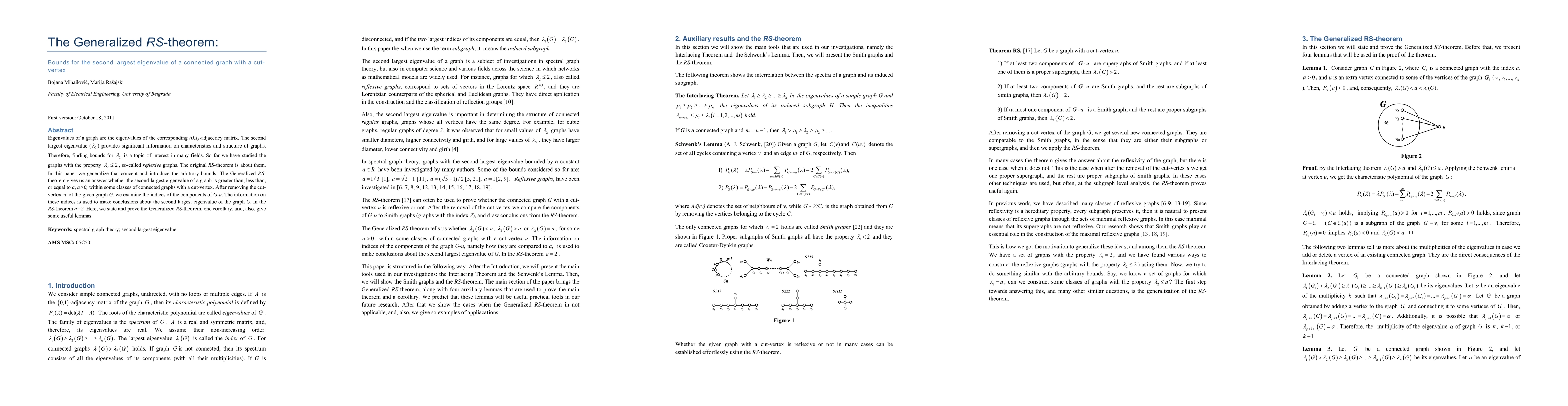The Generalized RS-theorem extends the original RS-theorem to provide bounds for the second largest eigenvalue of connected graphs with a cut-vertex, determining whether this eigenvalue is greater than, less than, or equal to any positive value a. The theorem utilizes the indices of components formed after removing the cut-vertex to draw conclusions about the graph's eigenvalue structure.