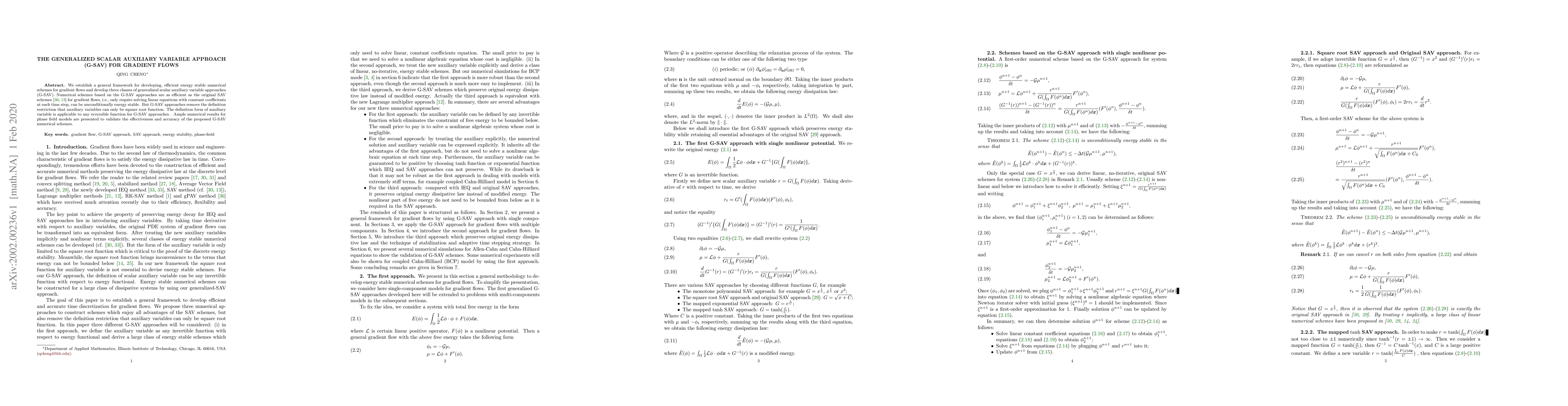 The paper introduces the generalized scalar auxiliary variable approach (G-SAV) for gradient flows, providing efficient, energy stable numerical schemes that can use any reversible function for auxiliary variables, unlike the original SAV method. Numerical results for phase field models demonstrate the effectiveness and accuracy of the proposed G-SAV schemes.