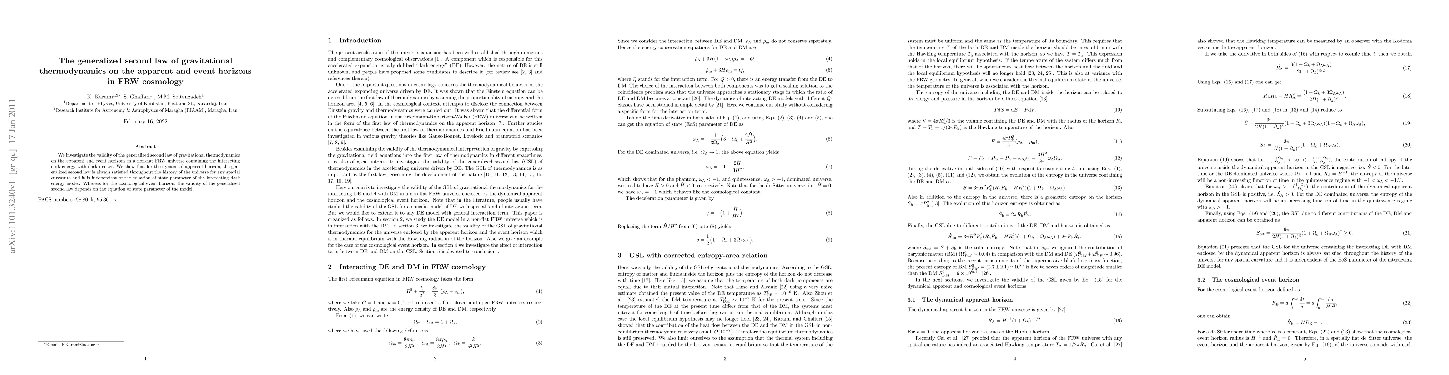 Summary: The study examines the generalized second law of gravitational thermodynamics on apparent and event horizons in a non-flat FRW universe with interacting dark energy and dark matter, finding that the law holds universally for the apparent horizon but its validity for the event horizon depends on the equation of state parameter.