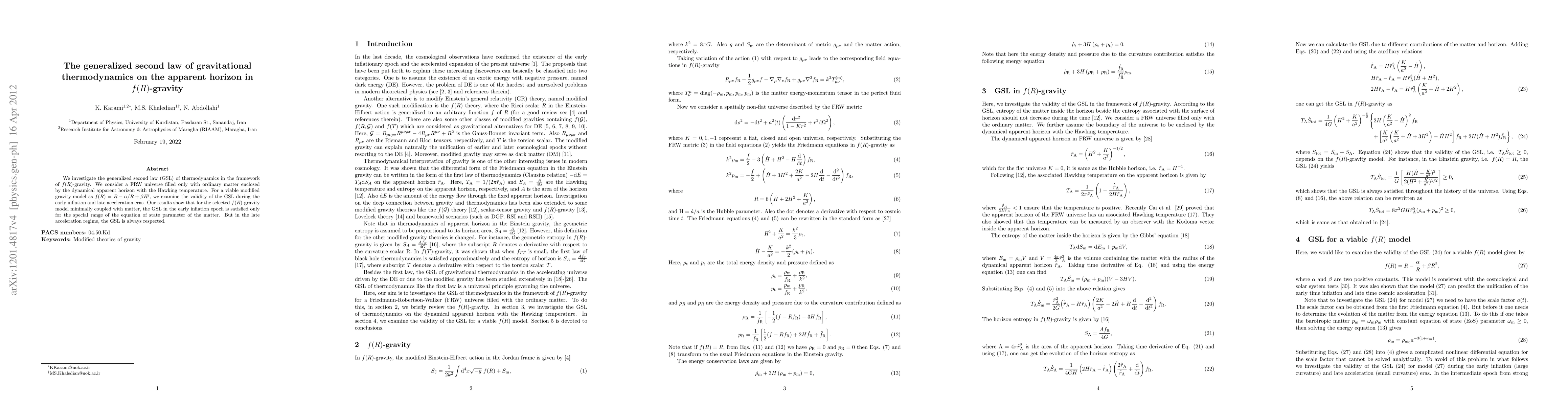 This paper explores the generalized second law of thermodynamics in $f(R)$-gravity within a FRW universe dominated by ordinary matter and bounded by a dynamical apparent horizon. It finds that the GSL holds only under specific conditions during early inflation but is consistently satisfied during the late acceleration phase for the chosen $f(R)$-gravity model.