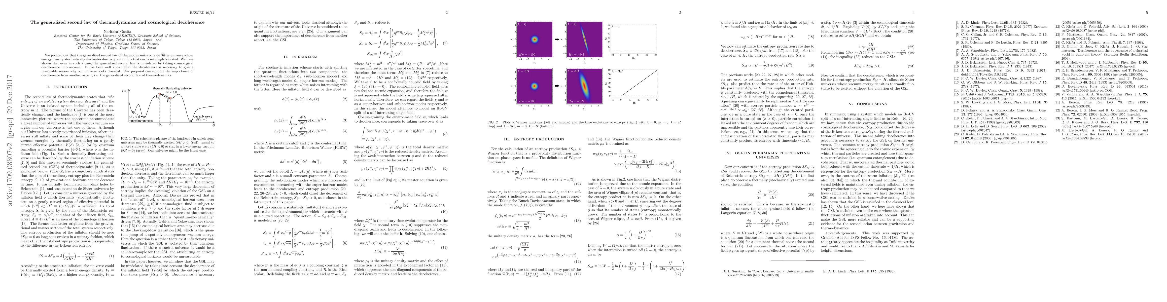 This paper discusses how quantum fluctuations in a de Sitter universe can seemingly violate the generalized second law of thermodynamics but argues that cosmological decoherence preserves this law, underscoring the broader significance of decoherence in explaining classicality in our universe.
