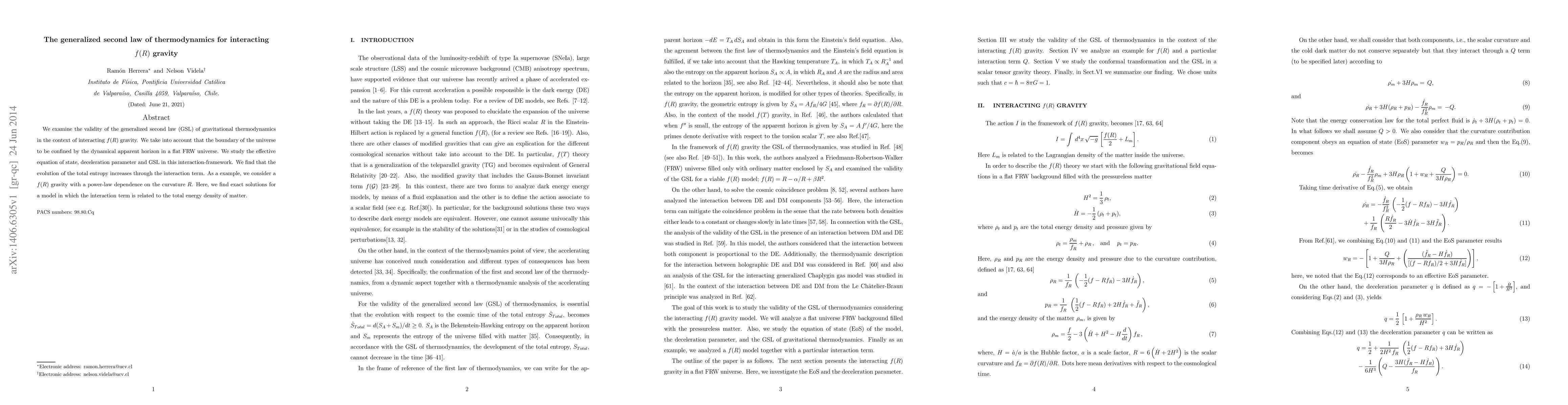 We examine the validity of the generalized second law (GSL) of gravitational thermodynamics in the context of interacting $f(R)$ gravity. We take into account that the boundary of the universe to be confined by the dynamical apparent horizon in a flat FRW universe. We study the effective equation of state, deceleration parameter and GSL in this interaction-framework. We find that the evolution of the total entropy increases through the interaction term. As a example, we consider a $f(R)$ gravity with a power-law dependence on the curvature $R$. Here, we find exact solutions for a model in which the interaction term is related to the total energy density of matter.