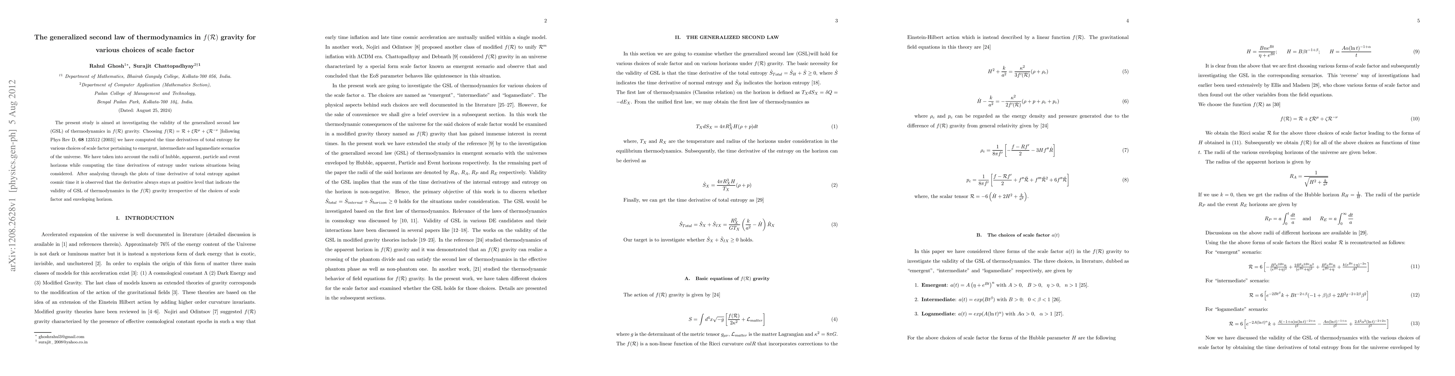 The present study is aimed at investigating the validity of the generalized second law (GSL) of thermodynamics in $f(\cal R)$ gravity. Choosing $f(\cal R)=R+\xi R^{\mu}+\zeta R^{-\nu}$ [following Phys Rev D, 68, 123512 (2003)] we have computed the time derivatives of total entropy for various choices of scale factor pertaining to emergent, intermediate and logamediate scenarios of the universe. We have taken into account the radii of hubble, apparent, particle and event horizons while computing the time derivatives of entropy under various situations being considered. After analyzing through the plots of time derivative of total entropy against cosmic time it is observed that the derivative always stays at positive level that indicate the validity of GSL of thermodynamics in the $f(\cal R)$ gravity irrespective of the choices of scale factor and enveloping horizon.