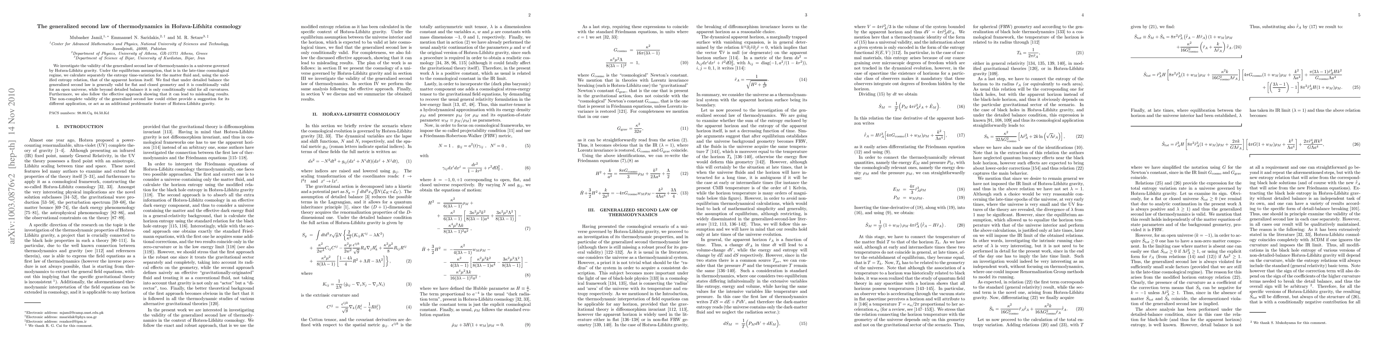 This paper examines the generalized second law of thermodynamics in the context of Horava-Lifshitz cosmology, finding that it holds under detailed balance for flat and closed geometries, but only conditionally valid beyond detailed balance and for open universes. The study also highlights the potential misleading results from the effective approach.