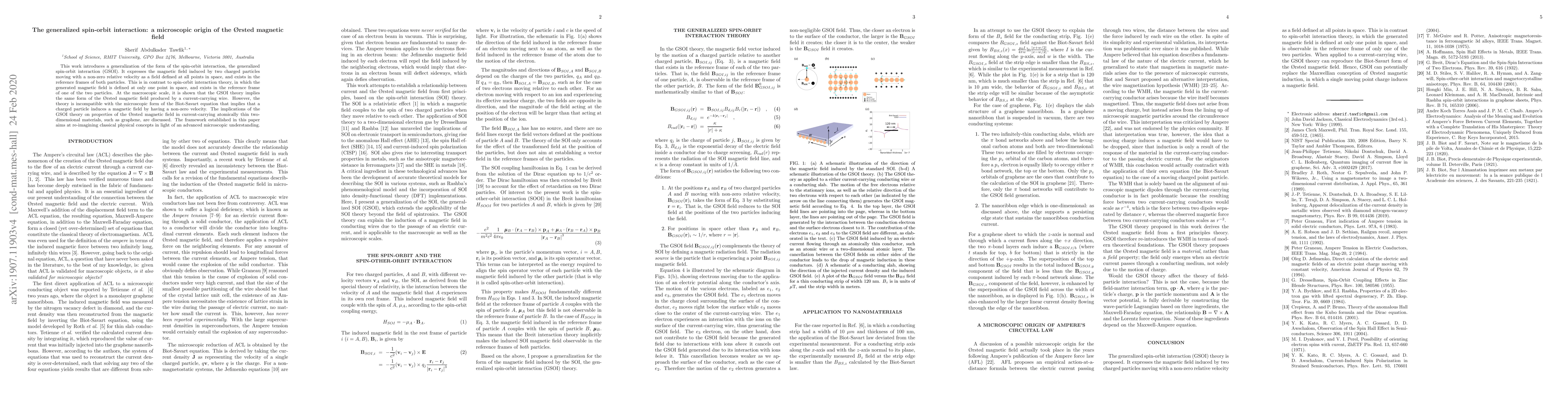 This work introduces a generalization of the form of the spin-orbit interaction, the generalized spin-orbit interaction (GSOI). It expresses the magnetic field induced by two charged particles moving with a non-zero relative velocity as a field defined at all points in space, and exists in the reference frames of both particles. This is in contrast to spin-orbit interaction theory, in which the generated magnetic field is defined at only one point in space, and exists in the reference frame of one of the two particles. At the macroscopic scale, it is shown that the GSOI theory implies the same form of the \O{}rsted magnetic field produced by a current-carrying wire. However, the theory is incompatible with the microscopic form of the Biot-Savart equation that implies that a charged particle induces a magnetic field by having a non-zero velocity. The implications of the GSOI theory on properties of the \O{}rsted magnetic field in current-carrying atomically thin two-dimensional materials, such as graphene, are discussed. The framework established in this paper aims at re-imagining classical physical concepts in light of an advanced microscopic understanding.