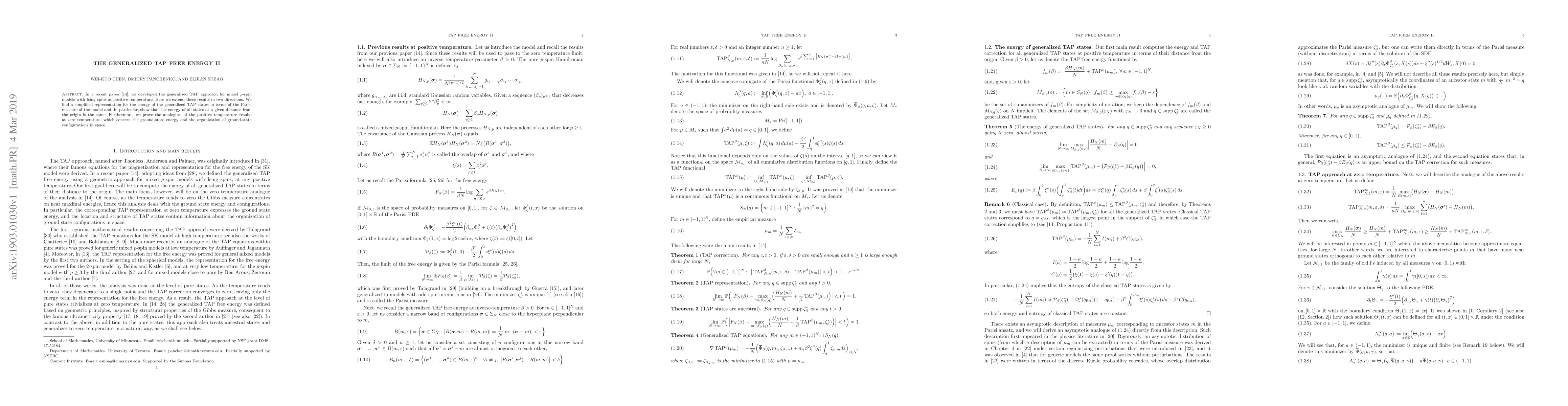 In a recent paper [14], we developed the generalized TAP approach for mixed $p$-spin models with Ising spins at positive temperature. Here we extend these results in two directions. We find a simplified representation for the energy of the generalized TAP states in terms of the Parisi measure of the model and, in particular, show that the energy of all states at a given distance from the origin is the same. Furthermore, we prove the analogues of the positive temperature results at zero temperature, which concern the ground-state energy and the organization of ground-state configurations in space.