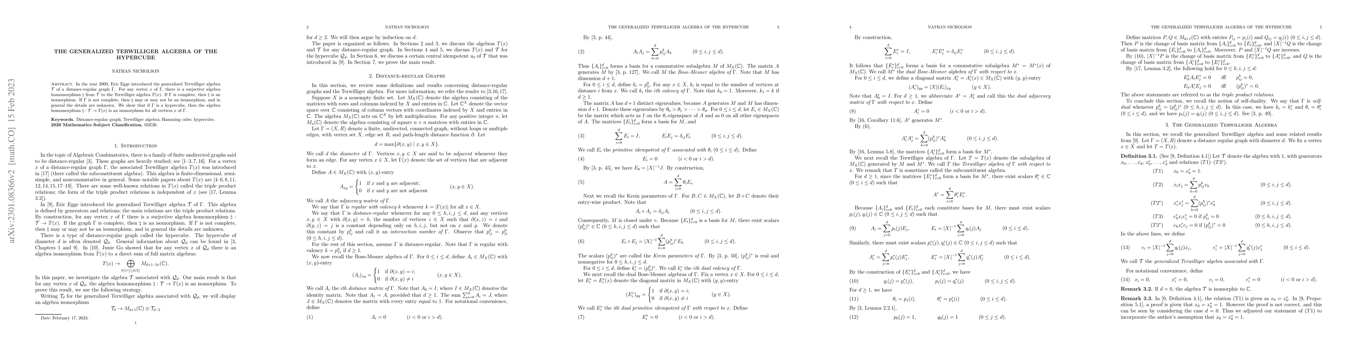 This paper demonstrates that for hypercube graphs, the generalized Terwilliger algebra $\mathcal T$ is isomorphic to the Terwilliger algebra $T(x)$ for any vertex $x$, resolving the unknown details for non-complete distance-regular graphs.