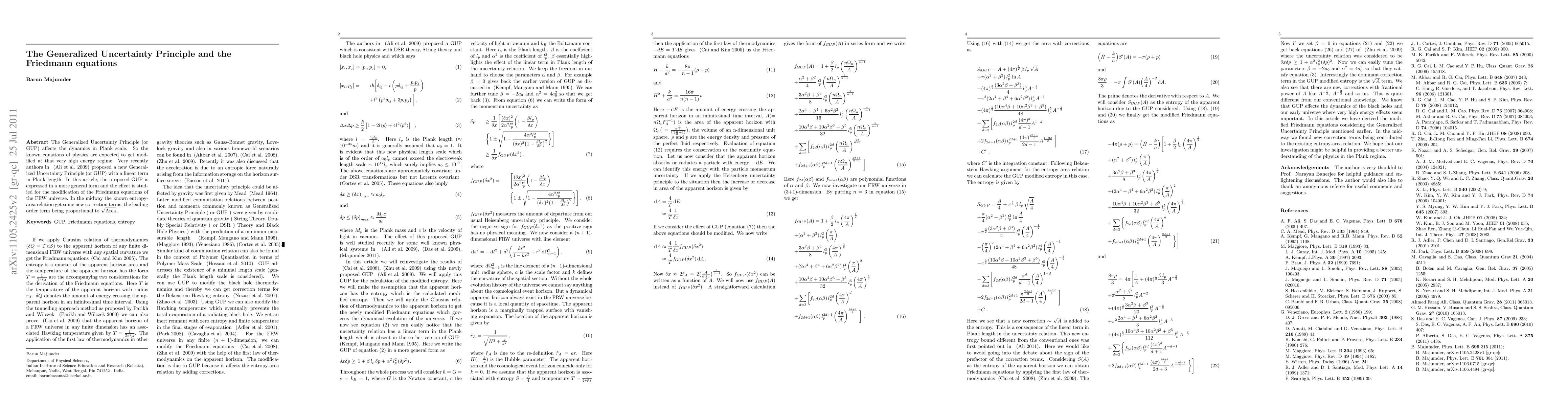 The Generalized Uncertainty Principle (or GUP) affects the dynamics in Plank scale. So the known equations of physics are expected to get modified at that very high energy regime. Very recently authors in (Ali et al. 2009) proposed a new Generalized Uncertainty Principle (or GUP) with a linear term in Plank length. In this article, the proposed GUP is expressed in a more general form and the effect is studied for the modification of the Friedmann equations of the FRW universe. In the midway the known entropy-area relation get some new correction terms, the leading order term being proportional to square root of area.