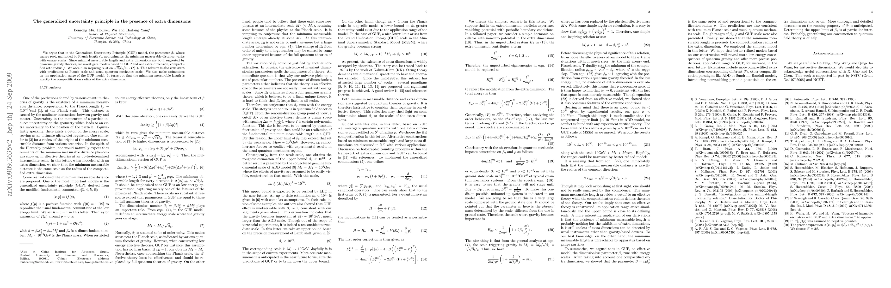 This paper explores the Generalized Uncertainty Principle (GUP) in the context of quantum gravity, proposing that the parameter $\beta_0$ varies with energy scales. It finds a relation $\sqrt{\beta_0} \ell_p/\rho \sim {\cal O}(1)$ between the GUP parameter, Planck length, and the compactification radius of an extra dimension, consistent with predictions at both Planck and quantum mechanics scales.