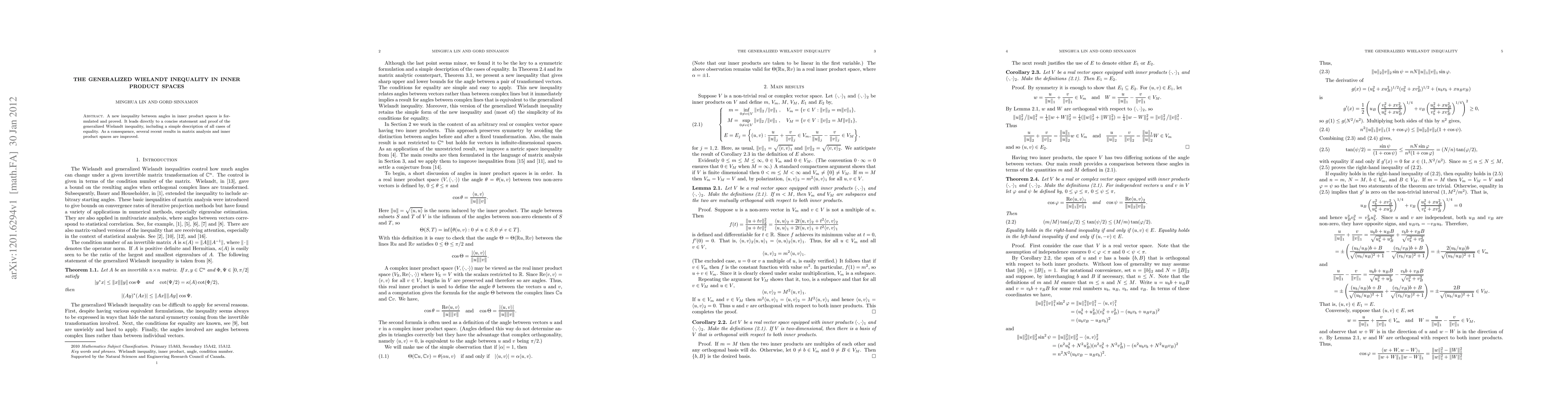 A new inequality between angles in inner product spaces is formulated and proved. It leads directly to a concise statement and proof of the generalized Wielandt inequality, including a simple description of all cases of equality. As a consequence, several recent results in matrix analysis and inner product spaces are improved.