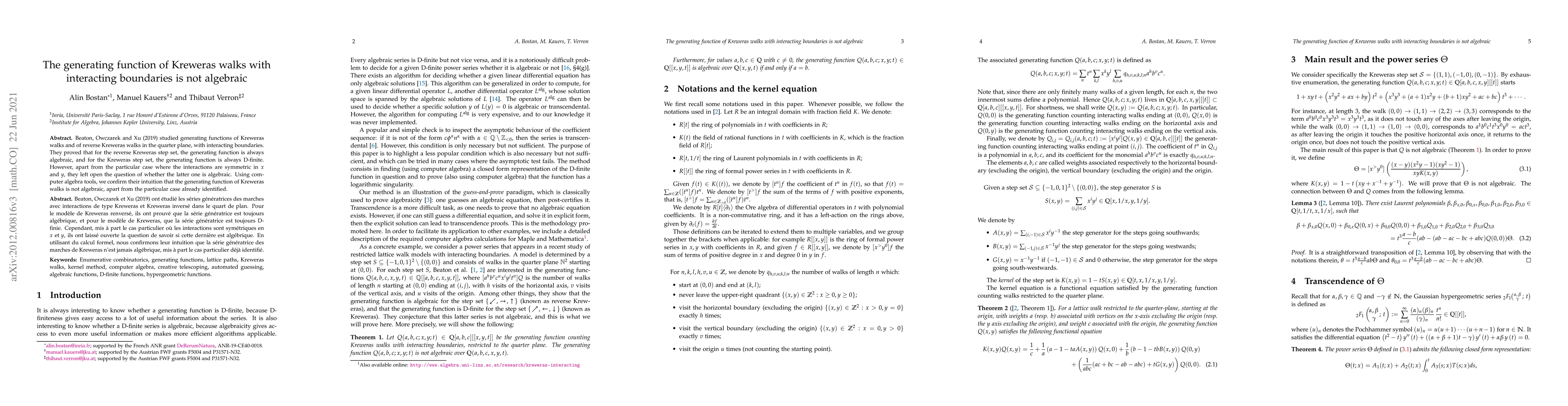 The generating function of Kreweras walks with interacting boundaries is not algebraic, except in one particular case where interactions are symmetric.