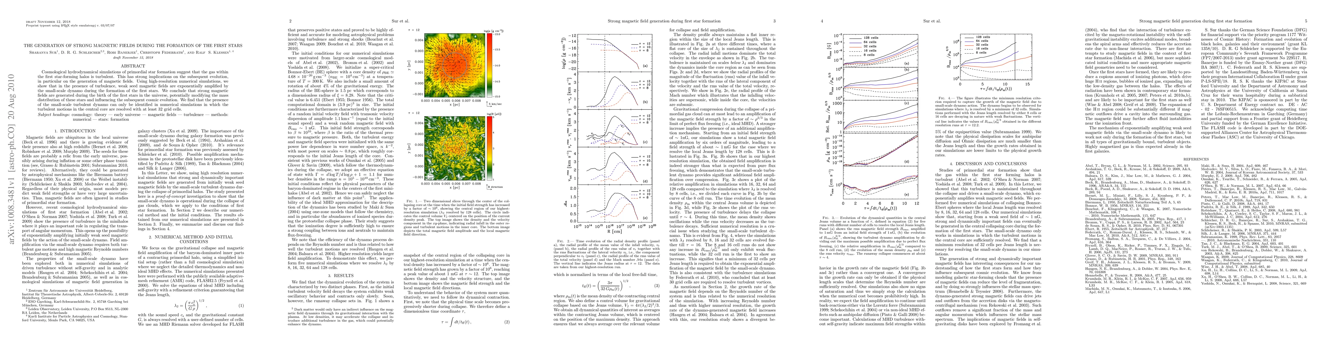 This research demonstrates that turbulence in the gas surrounding the first star-forming halos amplifies weak seed magnetic fields through a small-scale dynamo, generating strong magnetic fields during the birth of the first stars and potentially influencing their mass distribution and cosmic evolution. High-resolution simulations reveal that resolving turbulent motions with at least 32 grid cells is necessary to identify this dynamo effect.