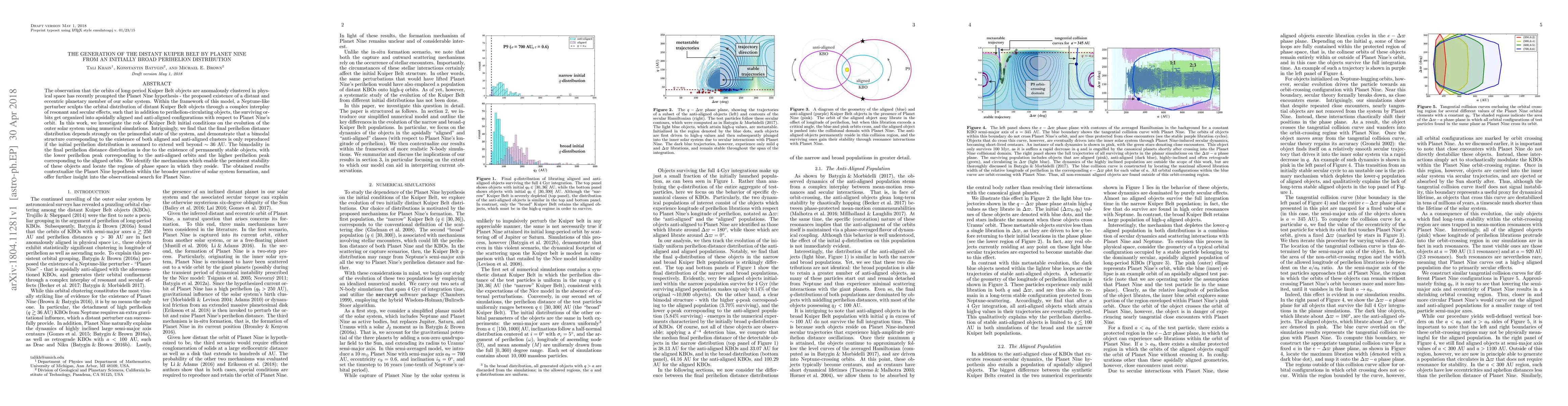 This paper explores how the existence of Planet Nine could shape the Kuiper Belt's orbital distribution through numerical simulations, finding that a broad initial perihelion distribution beyond 36 AU is necessary to reproduce the observed bimodal structure in the final perihelion distance distribution. The study identifies mechanisms that maintain the stability of aligned and anti-aligned orbits, providing insights into the formation of the outer solar system and the search for Planet Nine.