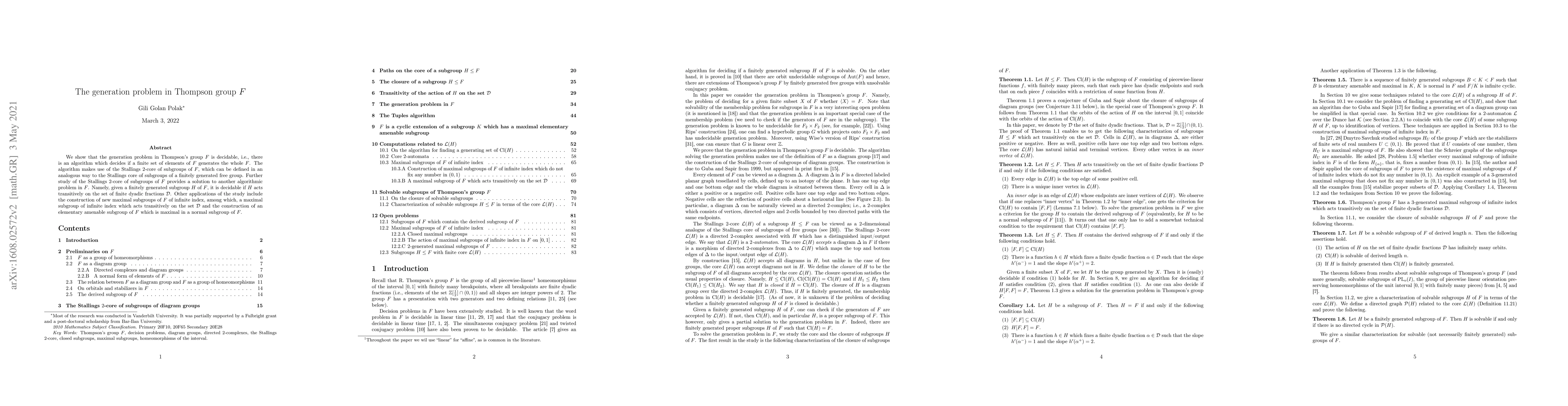This paper demonstrates that the generation problem in Thompson group $F$ is decidable using an algorithm based on the Stallings $2$-core, and it also resolves the decidability of whether a subgroup of $F$ acts transitively on dyadic fractions. Additionally, it constructs new maximal subgroups and an elementary amenable subgroup within $F$.