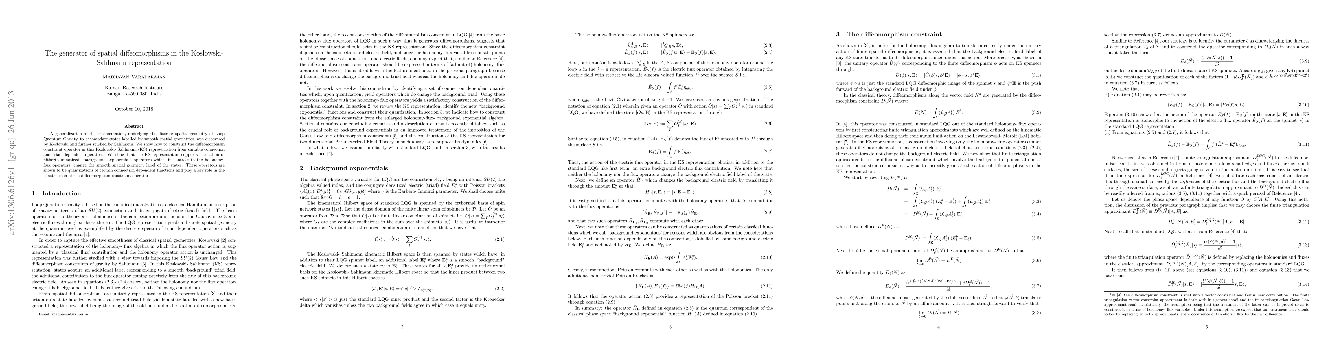 A generalization of the representation underlying the discrete spatial geometry of Loop Quantum Gravity, to accomodate states labelled by smooth spatial geometries, was discovered by Koslowski and further studied by Sahlmann. We show how to construct the diffeomorphism constraint operator in this Koslowski- Sahlmann (KS) representation from suitable connection and triad dependent operators. We show that the KS representation supports the action of hitherto unnoticed "background exponential" operators which, in contrast to the holonomy- flux operators, change the smooth spatial geometry label of the states. These operators are shown to be quantizations of certain connection dependent functions and play a key role in the construction of the diffeomorphism constraint operator.