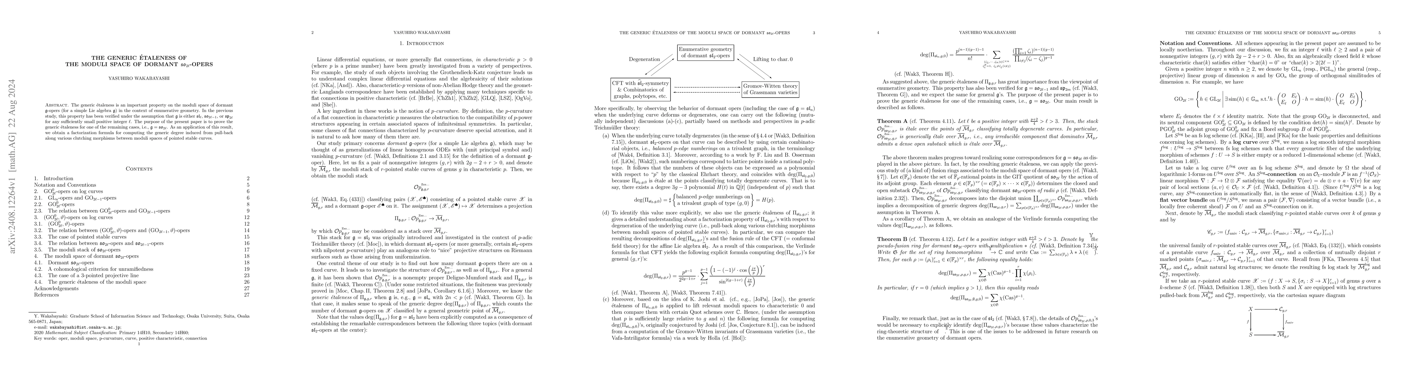 This paper proves the generic étaleness property for the moduli space of dormant $\mathfrak{so}_{2\ell}$-opers, extending previous results for other simple Lie algebras. The result also leads to a factorization formula for computing the generic degree in moduli spaces of pointed stable curves.