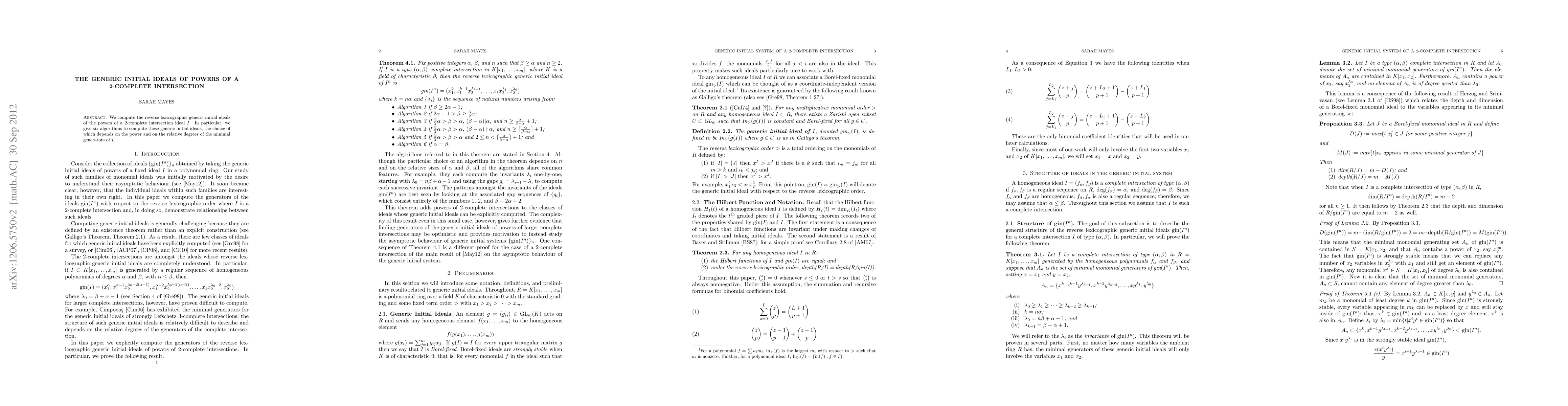 This research computes the reverse lexicographic generic initial ideals for powers of a 2-complete intersection ideal, presenting six algorithms tailored to different conditions based on the power and degrees of the ideal's generators.
