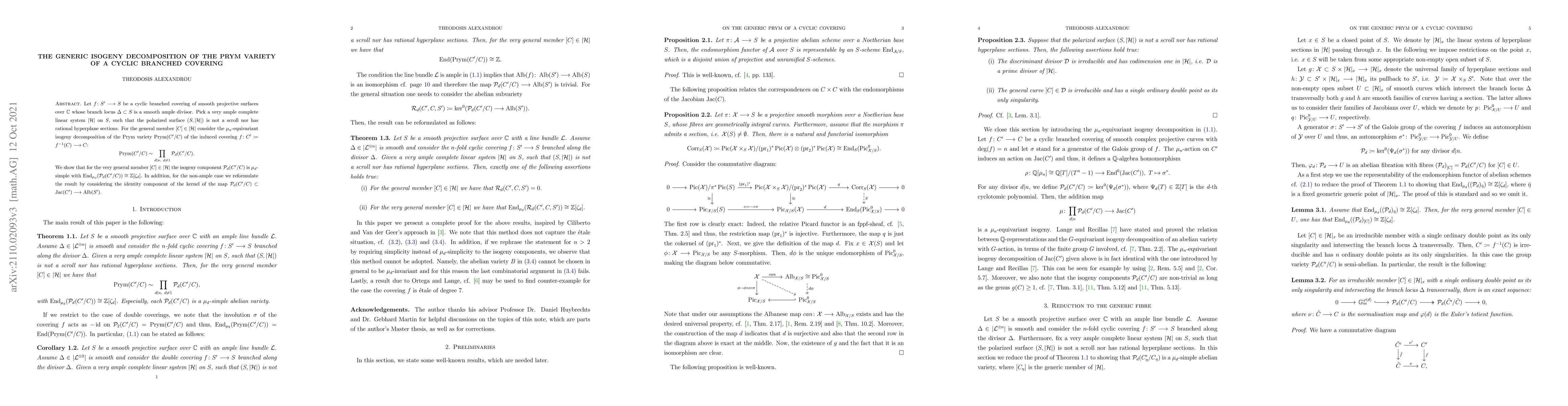 This paper studies the isogeny decomposition of the Prym variety of a cyclic branched covering of smooth projective surfaces over C, showing that the isogeny component for the general member is mu-d-simple with endomorphism isomorphic to Z[zeta_d].