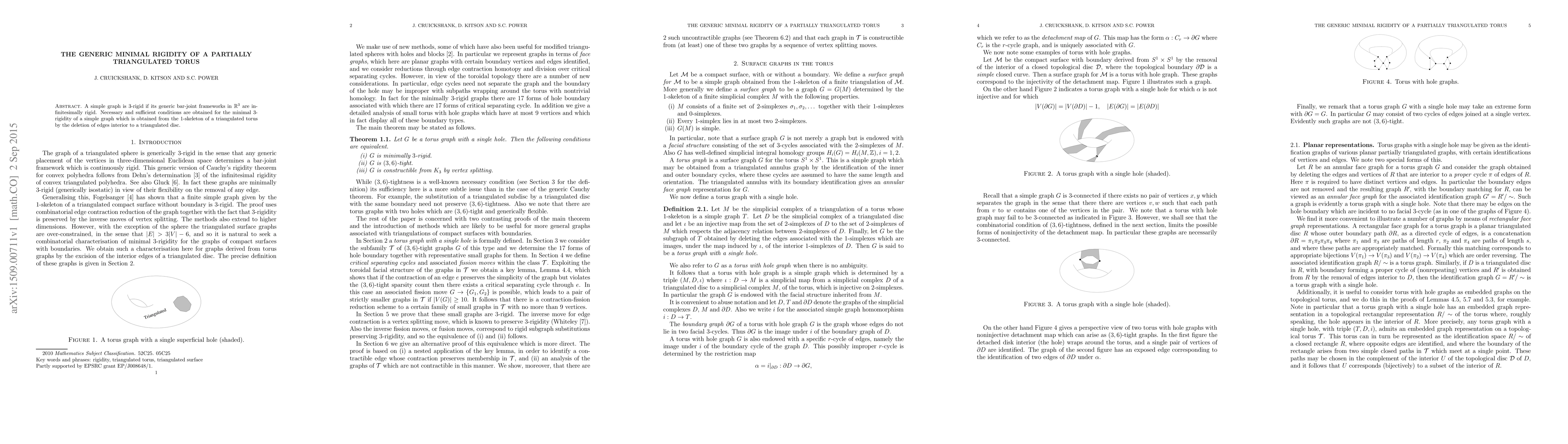 Summary: This paper establishes the necessary and sufficient conditions for the minimal $3$-rigidity of a simple graph derived from the $1$-skeleton of a triangulated torus by removing edges within a triangulated disc, ensuring its frameworks in $R^3$ are infinitesimally rigid.