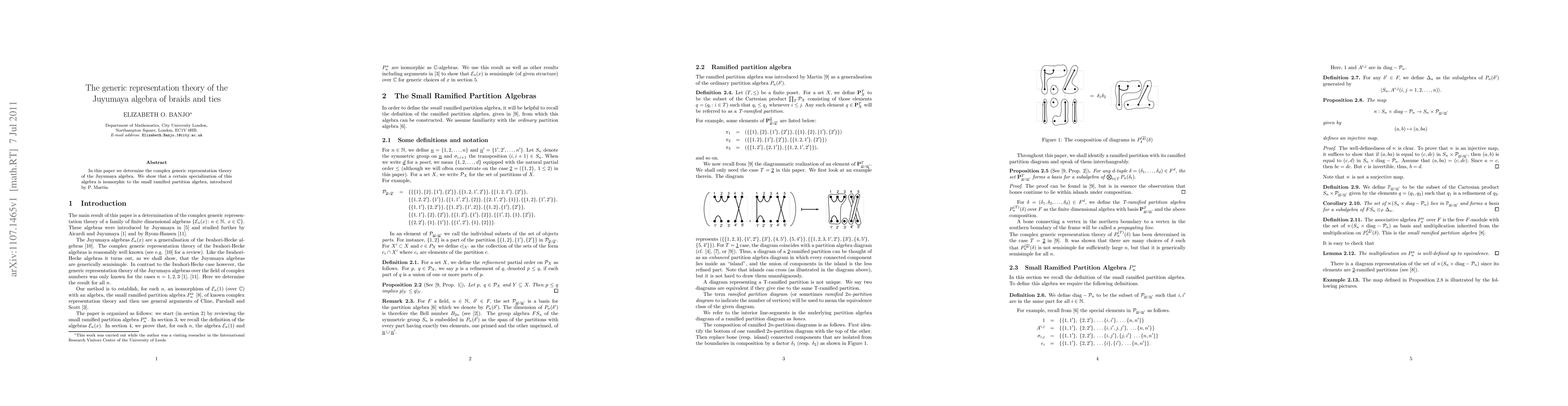 This paper determines the generic representation theory of the Juyumaya algebra, showing it is isomorphic to a specific partition algebra, with implications for understanding the algebra's structure.