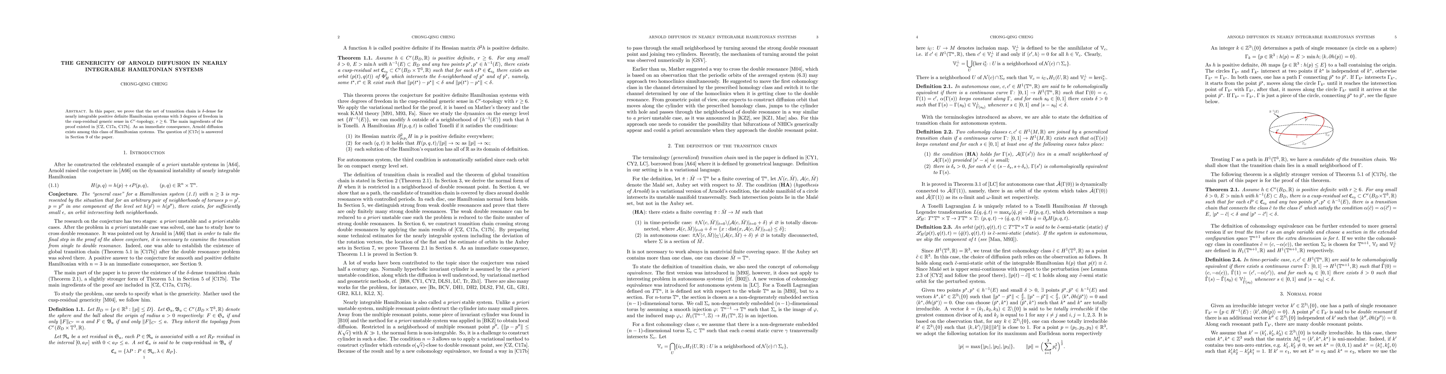 In this paper, we prove that the net of transition chain is $\delta$-dense for nearly integrable positive definite Hamiltonian systems with 3 degrees of freedom in the cusp-residual generic sense in $C^r$-topology, $r\ge 6$. The main ingredients of the proof existed in \cite{CZ,C17a,C17b}. As an immediate consequence, Arnold diffusion exists among this class of Hamiltonian systems. The question of \cite{C17c} is answered in Section 9 of the paper.