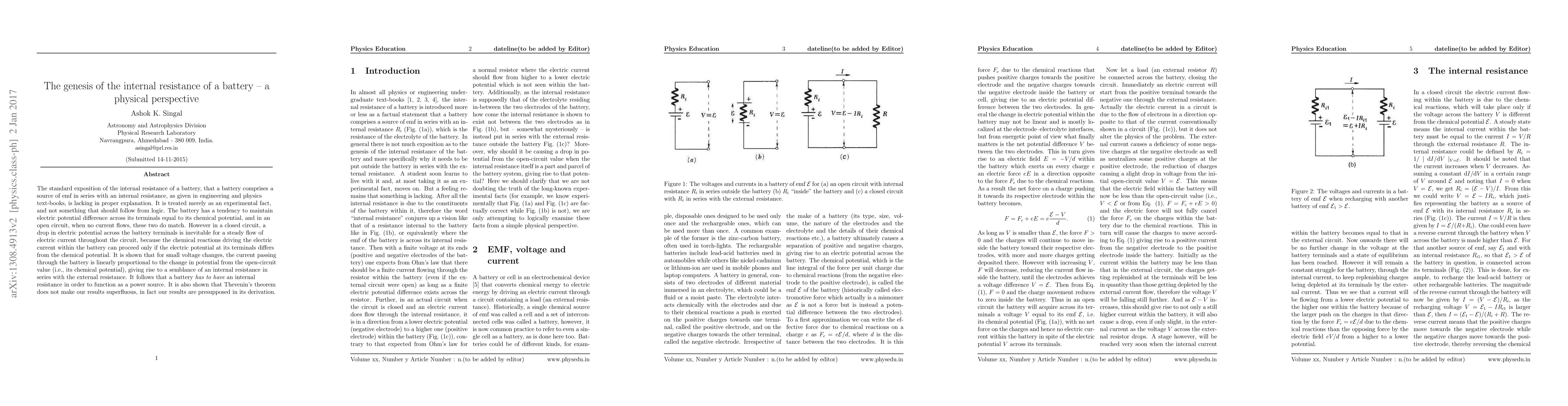 The standard exposition of the internal resistance of a battery, that a battery comprises a source of emf in series with an internal resistance, as given in engineering and physics text-books, is lacking in proper explanation. It is treated merely as an experimental fact, and not something that should follow from logic. The battery has a tendency to maintain electric potential difference across its terminals equal to its chemical potential, and in an open circuit, when no current flows, these two do match. However in a closed circuit, a drop in electric potential across the battery terminals is inevitable for a steady flow of electric current throughout the circuit, because the chemical reactions driving the electric current within the battery can proceed only if the electric potential at its terminals differs from the chemical potential. It is shown that for small voltage changes, the current passing through the battery is linearly proportional to the change in potential from the open-circuit value (i.e., its chemical potential), giving rise to a semblance of an internal resistance in series with the external resistance. It follows that a battery {\em has to have} an internal resistance in order to function as a power source. It is also shown that Thevenin's theorem does not make our results superfluous, in fact our results are presupposed in its derivation.