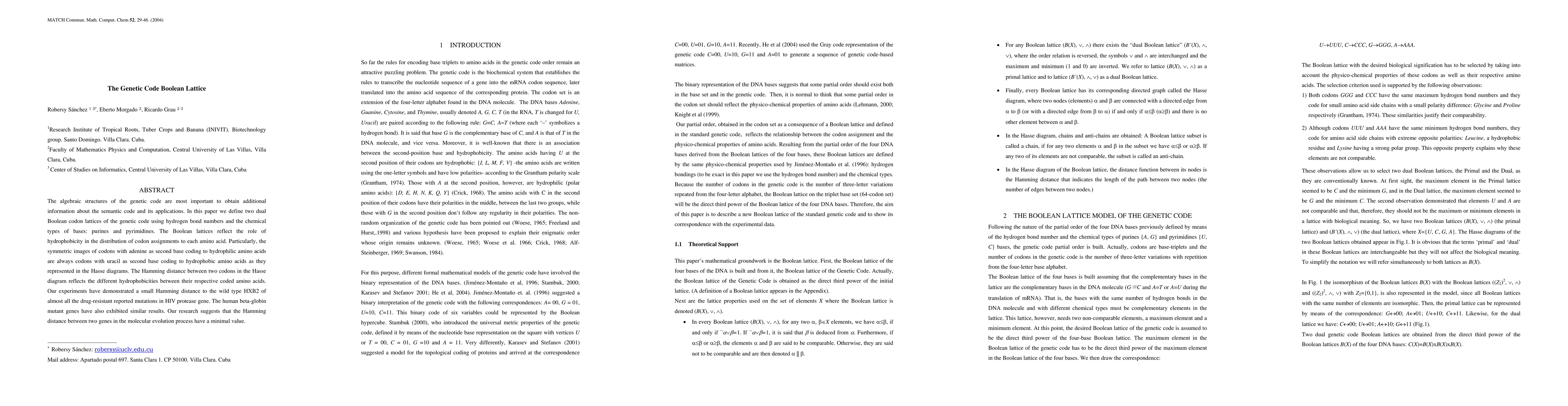 The algebraic structures of the genetic code are most important to obtain additional information about the semantic code and its applications. In this paper we define two dual Boolean codon lattices of the genetic code using hydrogen bond numbers and the chemical types of bases: purines and pyrimidines. The Boolean lattices reflect the role of hydrophobicity in the distribution of codon assignments to each amino acid. Particularly, the symmetric images of codons with adenine as second base coding to hydrophilic amino acids are always codons with uracil as second base coding to hydrophobic amino acids as they represented in the Hasse diagrams. The Hamming distance between two codons in the Hasse diagram reflects the different hydrophobicities between their respective coded amino acids. Our experiments have demonstrated a small Hamming distance to the wild type HXB2 of almost all the drug-resistant reported mutations in HIV protease gene. The human beta-globin mutant genes have also exhibited similar results. Our research suggests that the Hamming distance between two genes in the molecular evolution process have a minimal value.